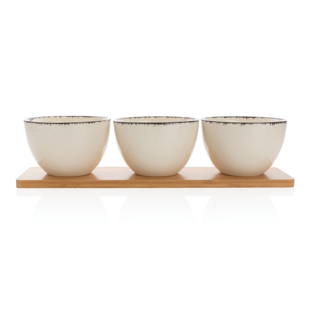 Logotrade Werbeartikel das Foto: 3-tlg. Ukiyo Servierschalen-Set mit Bambustablett