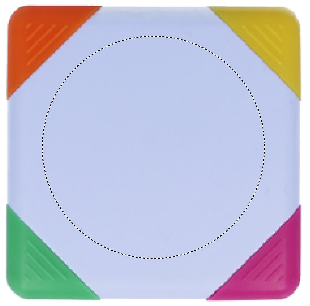 Textmarker in rechteckiger Form. 4 Farben: gelb, pink, orange und grün. ABS.