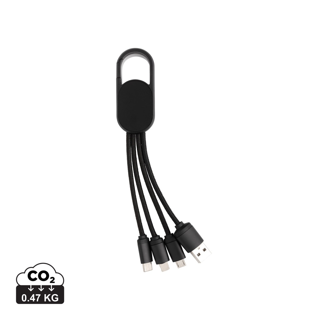 4-in-1 Kabel mit Karabiner-Clip, Schwarz