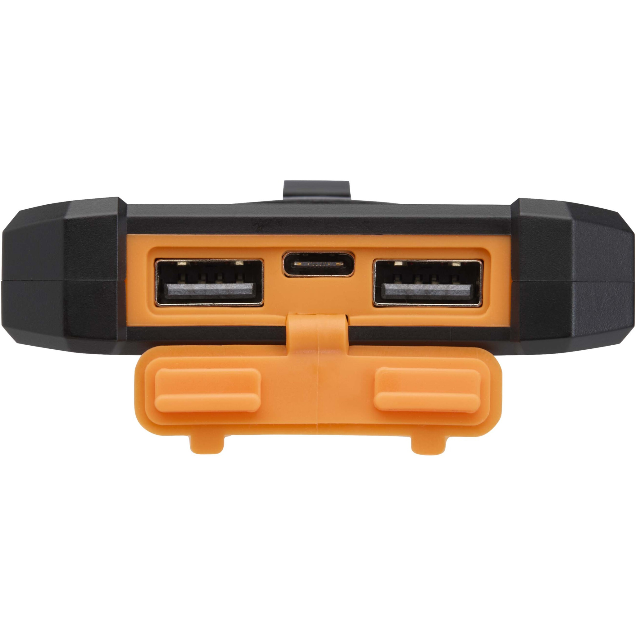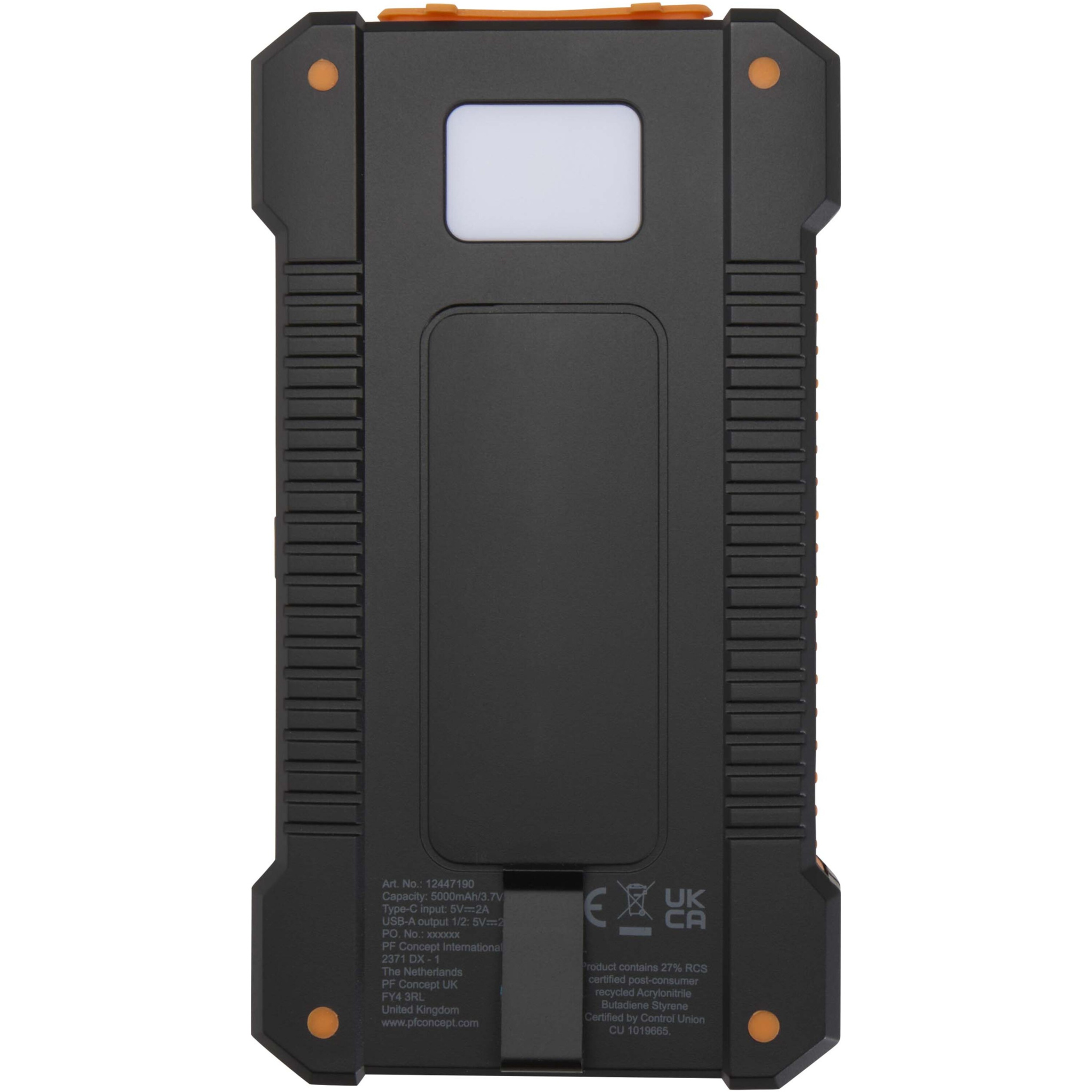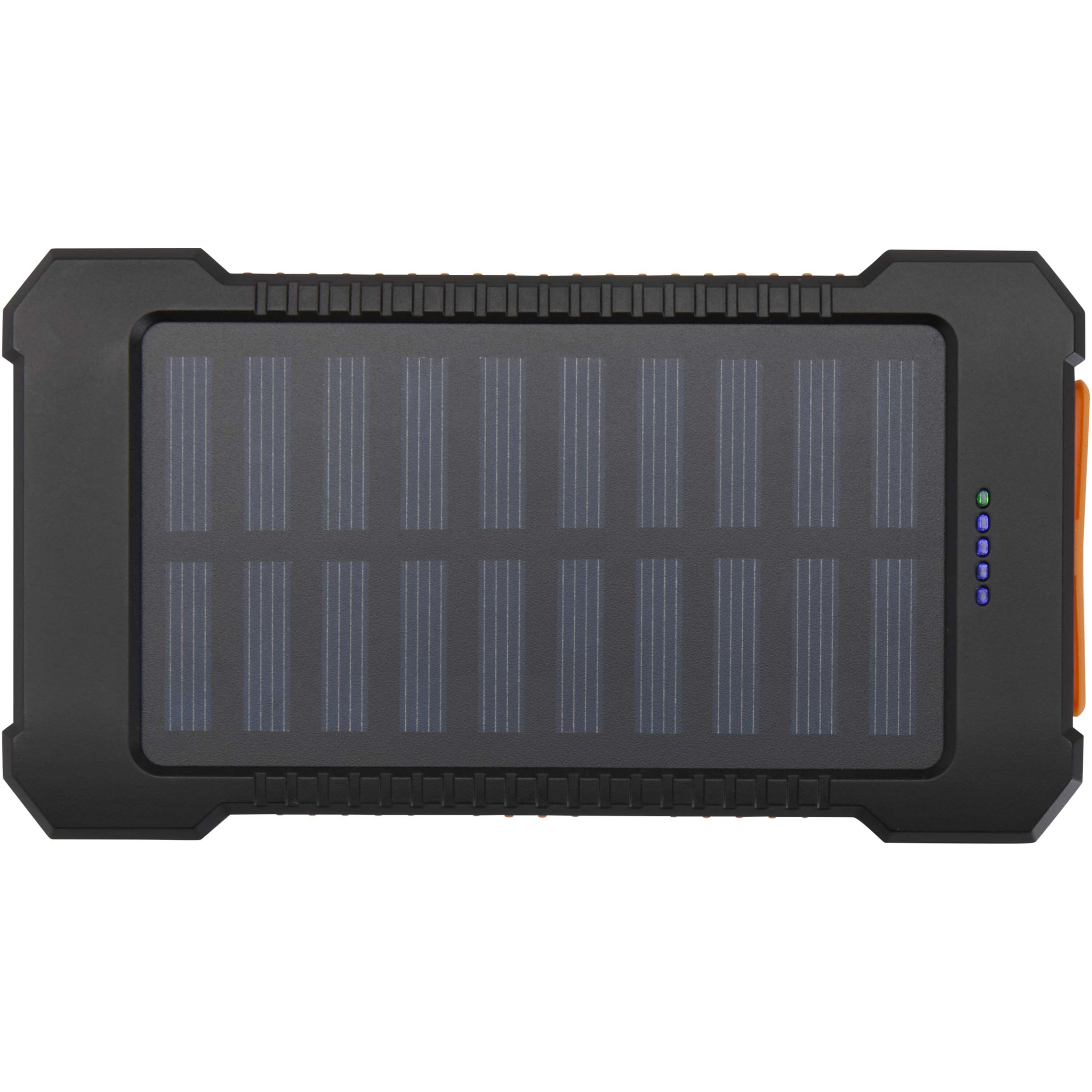 Die Altair 5.000 mAh Solar-Powerbank aus recyceltem Kunststoff ist robust und benutzerfreundlich konzipiert. Sie verfügt über zwei USB-A-Ausgänge sowie einen Type-C Ein-/Ausgang für flexible Lademöglichkeiten. Sie verfügt über ein robustes Gehäuse, einen abnehmbaren Clip zur einfachen Befestigung sowie eine integrierte Taschenlampe. Die Anschlüsse sind sicher hinter einer Silikonkappe verstaut. Mit Solaraufladung und einer LED-Anzeige für den Ladezustand ist diese Powerbank der ideale Begleiter für Outdoor-Abenteuer.