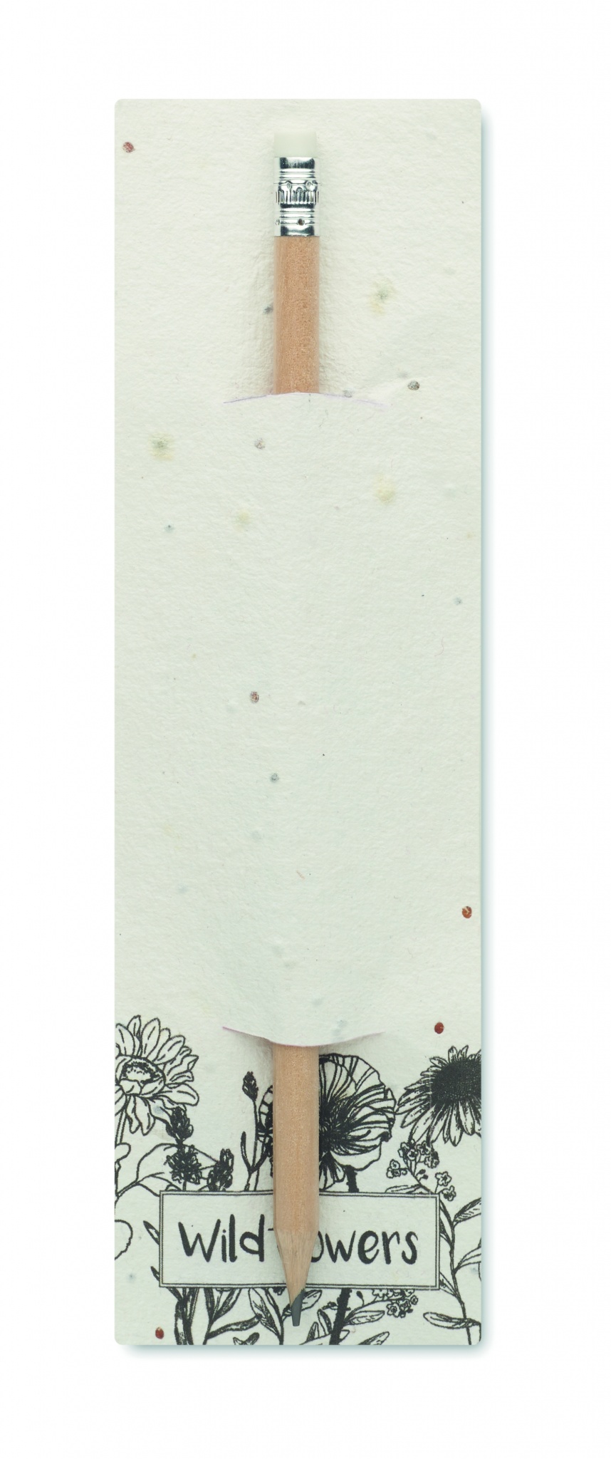 Naturbelassener Bleistift mit Radiergummi. Lieferung in Einsteckhülle aus Samenpapier (Wildblumen). Hergestellt in der EU.
