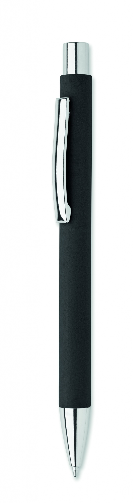 Druckkugelschreiber aus recyceltem Papier, Metallclip und Details aus Kunststoff. Blaue Tinte.