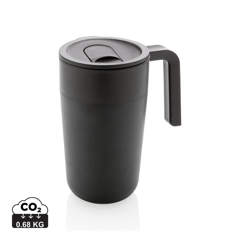 GRS recycelte PP und Stainless Steel Tasse mit Griff, Schwarz