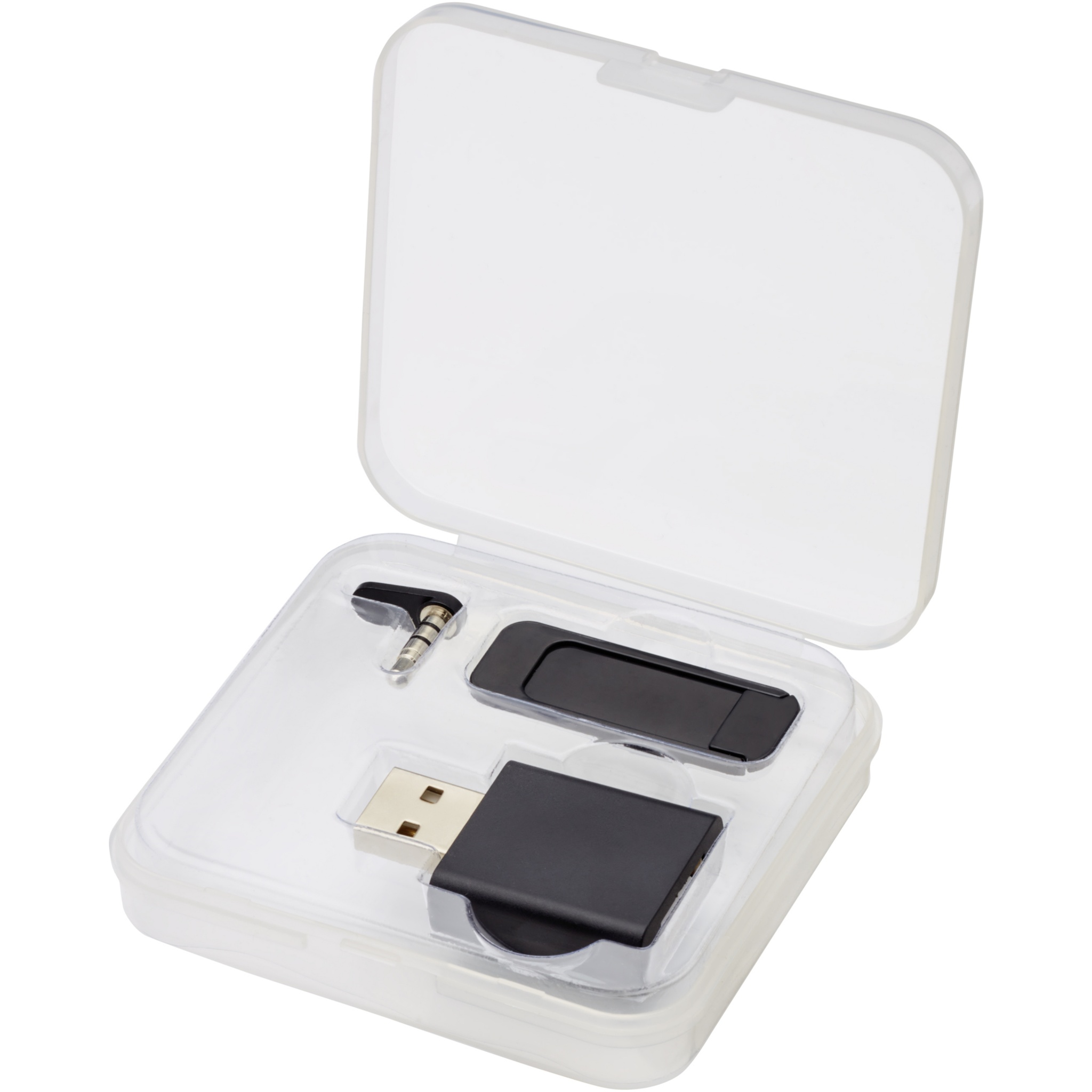 Digitales Datenschutz-Kit mit einem USB-Datenblocker, einem Webcam-Blocker und einem Audiobuchsen-Blocker. Der USB-Datenschutz verhindert einen versehentlichen Datenaustausch beim Anschluss eines Mobilgeräts an einen Computer oder eine öffentliche Ladestation. Der Artikel blockiert jede Datenübertragung, während das Gerät aufgeladen wird, und verhindert so, dass Daten gestohlen oder Malware installiert wird. Der Webcam-Blocker kann vor der Laptop-Webcam angebracht werden, um unerwünschten Zugriff auf die Webcam zu blockieren. Der Audio-Klinkenblocker kann im AUX-Port des Geräts platziert werden, um zu verhindern, dass Dritte Gespräche mithören. Geliefert in einer Schutzbox.