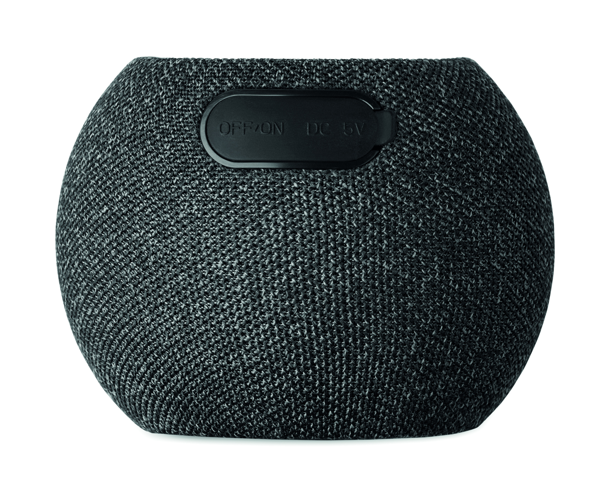 5.0 wireless Lautsprecher mit 15W kabelloser Ladestation. ABS mit RPET-Gewebe und schwarz beschichtetem Bambusdetail. SD-Kartenslot und AUX-/USB-Kabel. Eingebauter Li-Ion-Akku: 1200 mAh. Ausgangsdaten: 5W, 3 Ohm und 5V. Spielzeit ca. 5 Stunden.