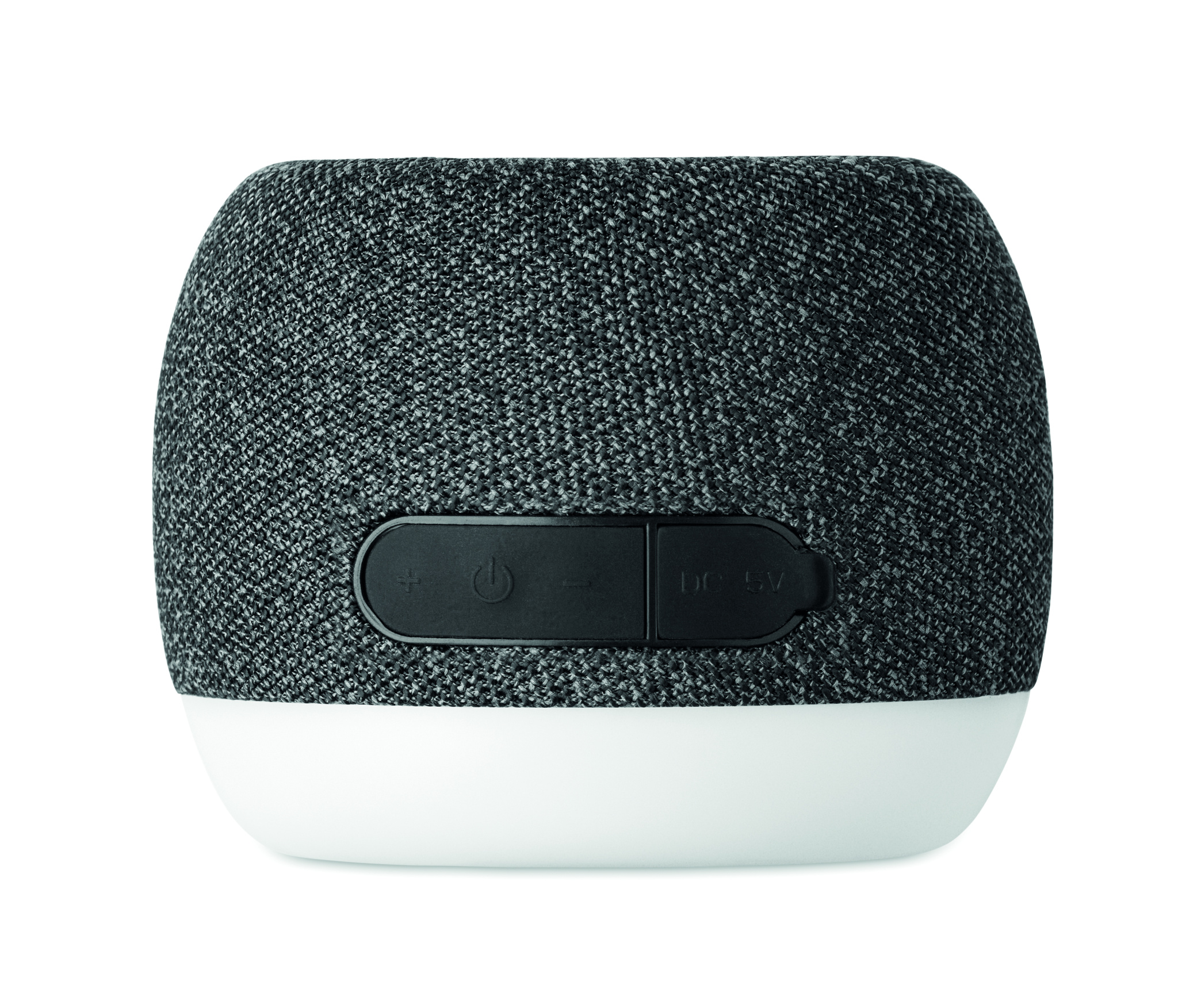 5.0 wireless Lautsprecher mit 15W kabelloser Ladestation. ABS mit RPET-Gewebe und schwarz beschichtetem Bambusdetail. Stimmungslicht und SD-Kartenslot. Eingebauter Li-Ion-Akku: 1200 mAh. Ausgangsdaten: 5W, 3 Ohm und 5V. Spielzeit ca. 3 Stunden.
