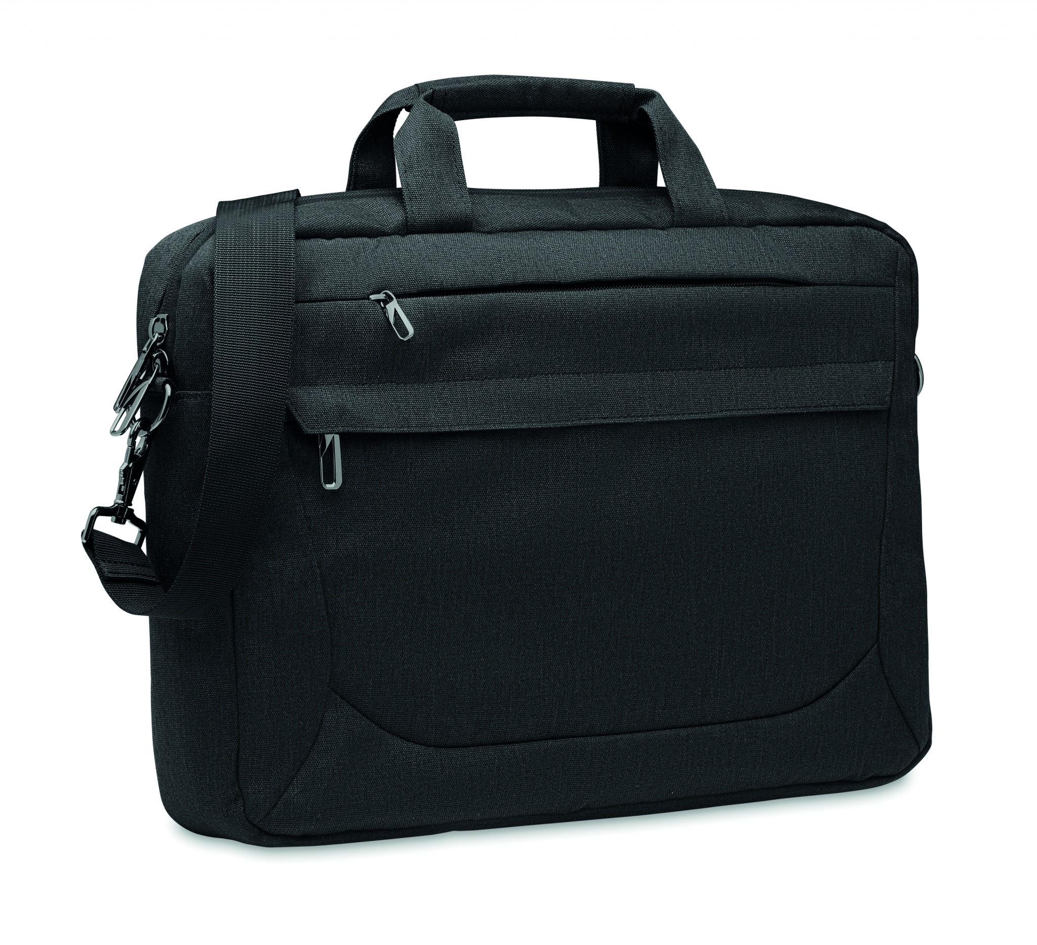 15'' Laptop-Rucksack aus 600D RPET Polyester. 2 Hauptfächer für Laptop und Tablet sowie große Frontreißverschlusstasche. Kleine Tasche mit Reißverschluss. Abnehmbare und verstellbare Schultergurte. Trolley-Halterung.