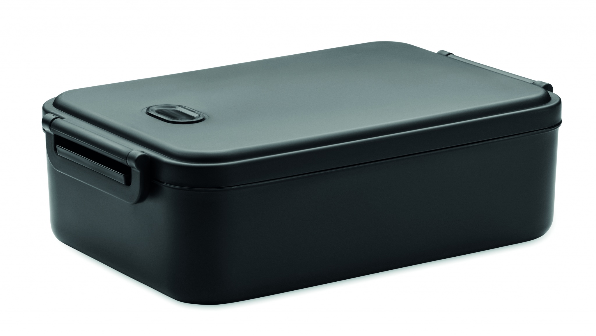 Große Lunchbox aus recyceltem PP mit luftdichtem Deckel, Ventil und zwei seitlichen Halteklammern. Füllmenge: 2200 ml.