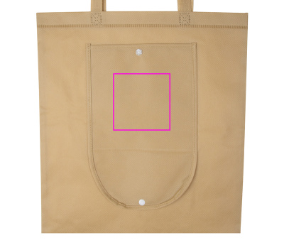 Faltbare Non Woven Tasche mit 80g/m2 und kurzen Henkeln. Ihr Logo wird einseitig aufgedruckt.
