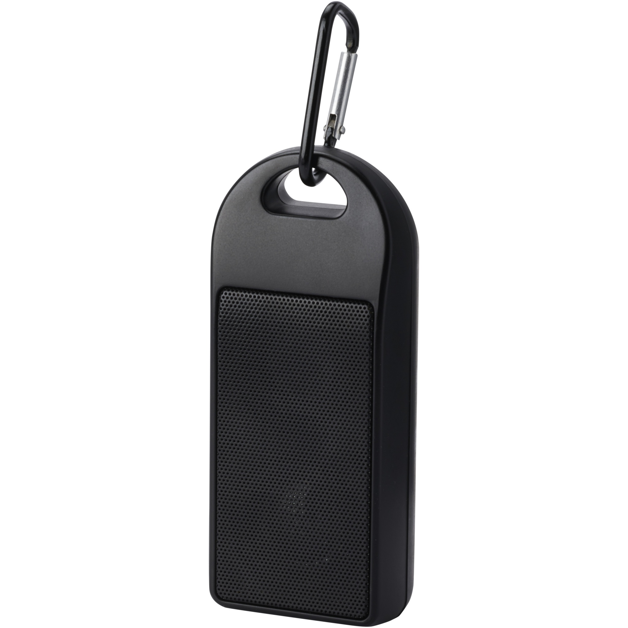 RCS-recycelter 3W Bluetooth® Lautsprecher, der Musik, Podcasts usw. von jedem Bluetooth® fähigen Gerät abspielt und damit ein idealer Begleiter für jede Gelegenheit ist. Dank des mitgelieferten Karabiners lässt sich der Lautsprecher leicht an einem Rucksack befestigen, und die Schutzklasse IPX4 schützt ihn vor gelegentlichem Regen. Genießen Sie dank des 300 mAh Li-Ionen Akkus bis zu 1,5 Stunden Musik bei maximaler Lautstärke. Die Ladezeit beträgt 1,5 Stunden. Bluetooth® 5.0 mit einer Reichweite von ca. 10 Metern. Im Lieferumfang enthalten sind ein Benutzerhandbuch, ein Karabiner, ein 50 cm langes USB-A-auf-Typ-C-Ladekabel, verpackt in einer zu 100 % recycelten Box.