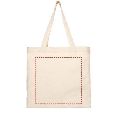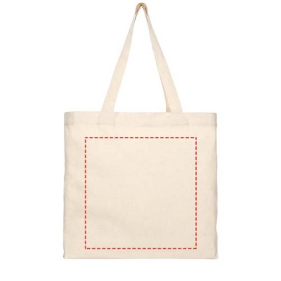 Tragetasche aus 210 g/m² recycelter Baumwolle und recyceltem Polyester. Recycelte Baumwolle wird aus Verbrauchsabfällen hergestellt, die während des Schneidevorgangs in Textilfabriken anfallen. Tragetasche mit Zwickel und großem Hauptfach. Ausgestattet mit zwei Griffen mit einer Höhe von 31 cm. Tragekraft bis zu 10 kg Gewicht. Aufgrund des Produktionsprozesses kann es zu geringfügigen Farbabweichungen des Produktes kommen.