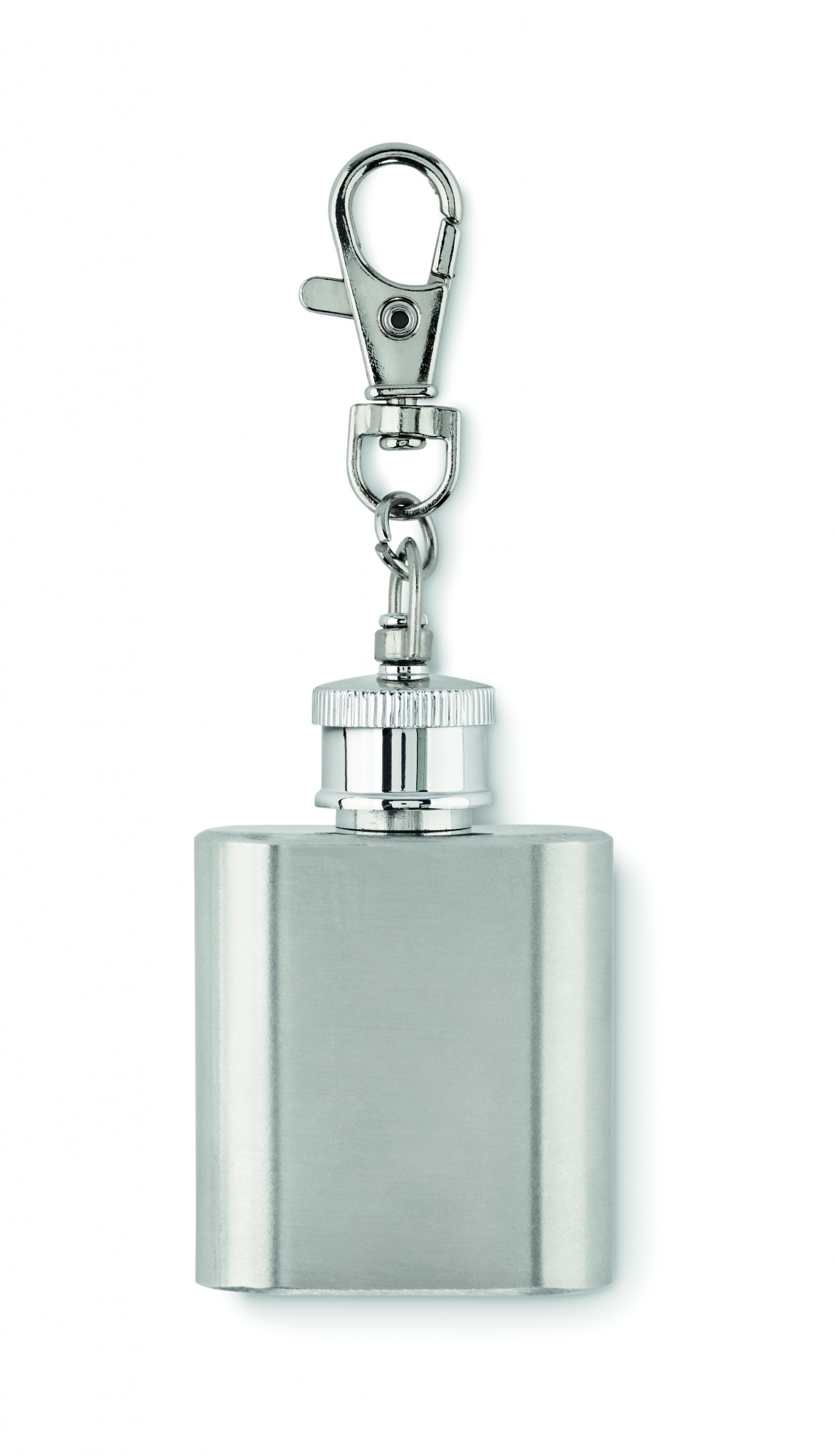 Schlüsselring mit kleinem Flachmann. Edelstahl. Füllmenge 28 ml.