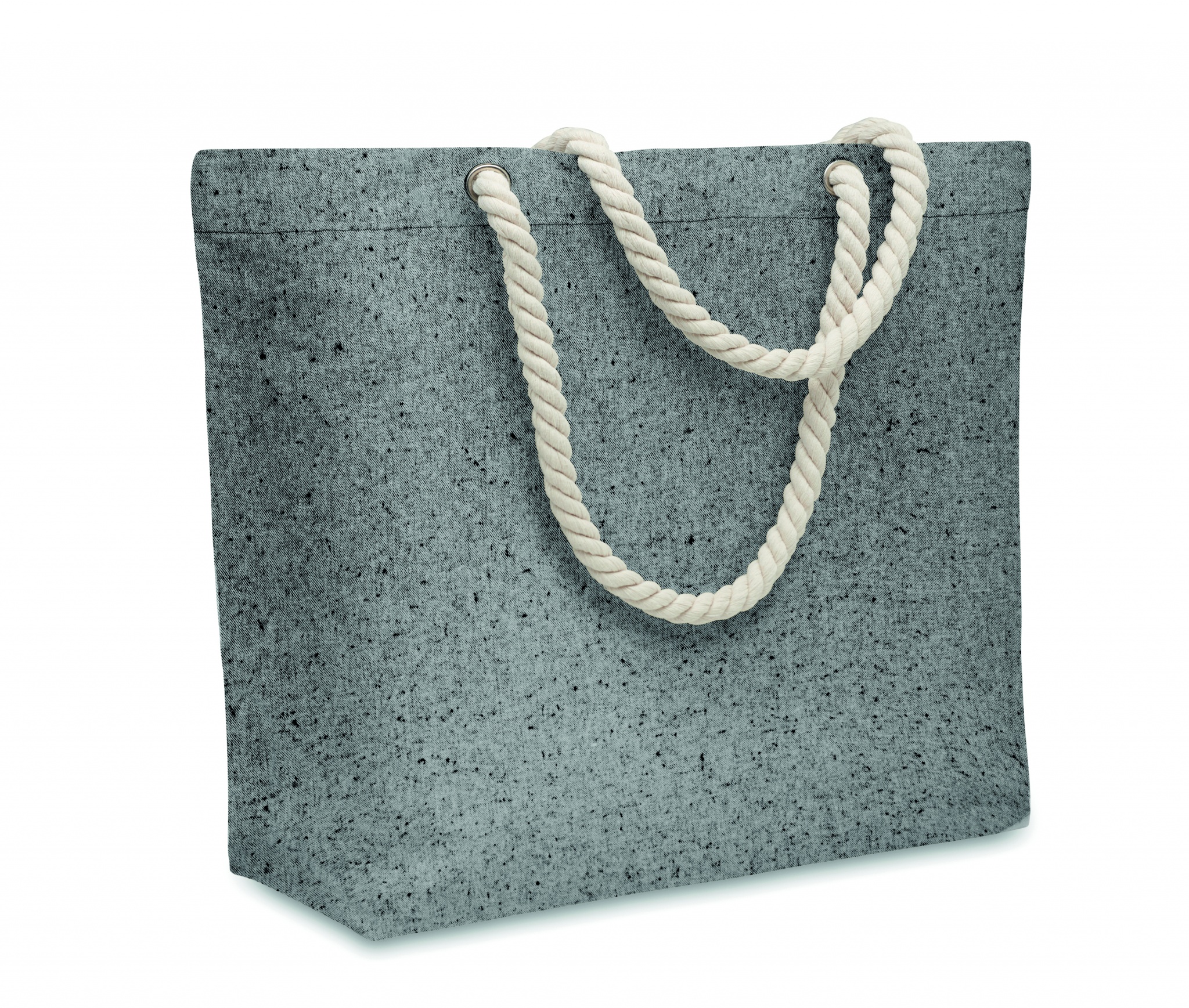 Strand- oder Einkaufstasche aus recycelter Baumwolle (80 % recycelte Baumwolle, 20 % Baumwolle)mit Kordelgriff. 220 g/m².