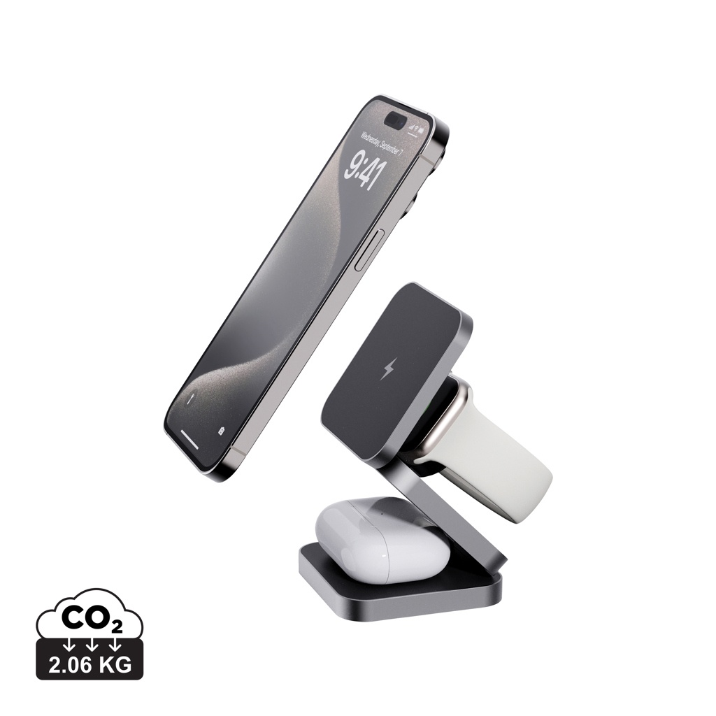 Logotrade Geschäftsgeschenke das Foto: Terra faltbares 3-in-1 15W Charger aus RCS rec. Aluminium