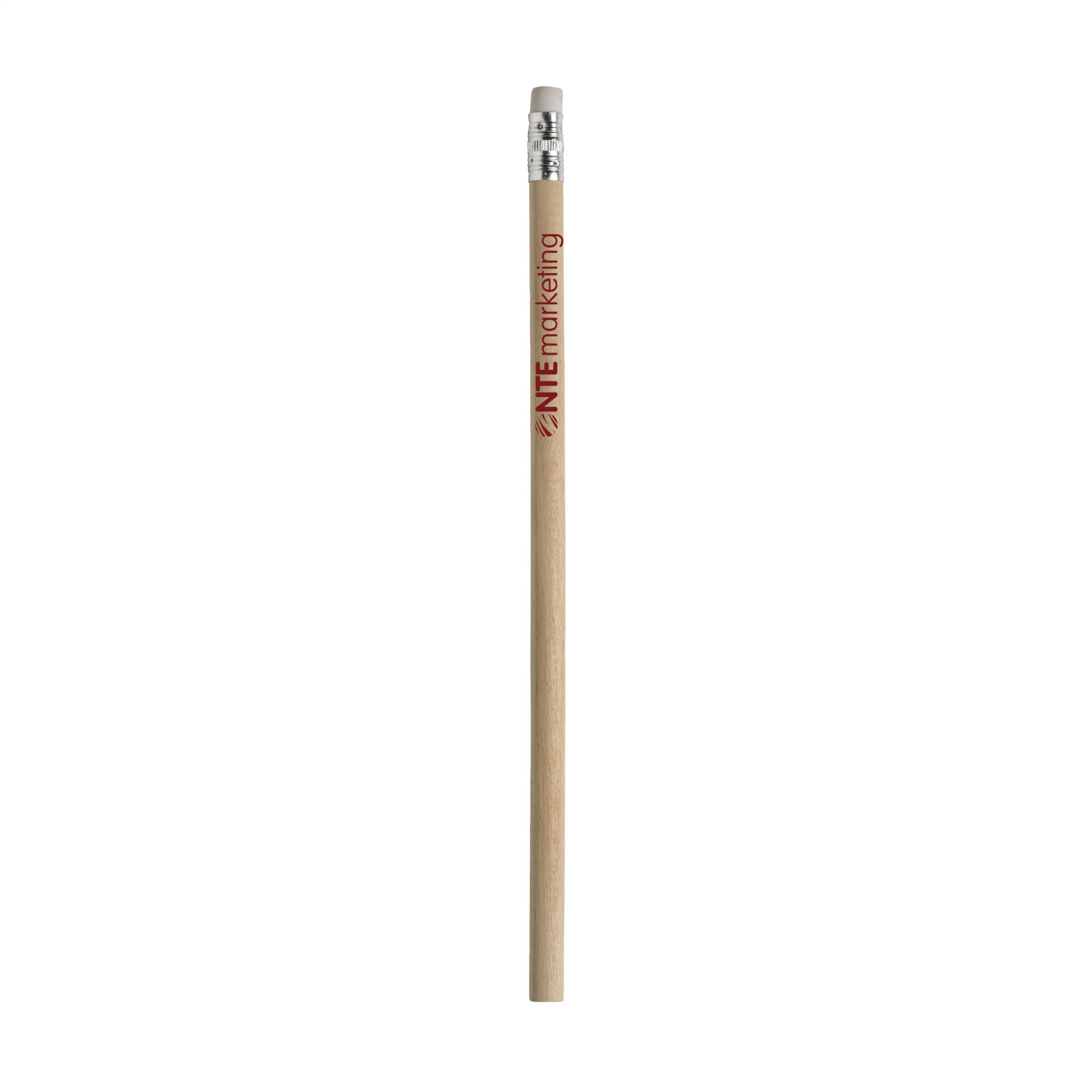 Ungespitzter Holzbleistift (HB) mit Radiergummi. Unlackiert.