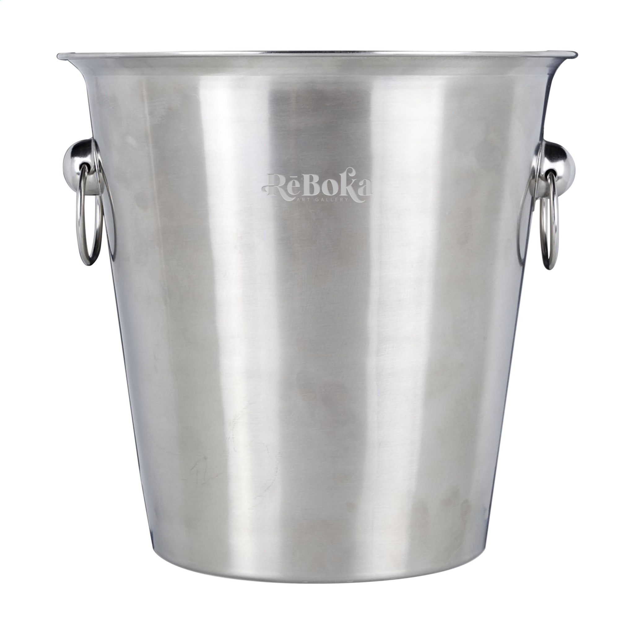 Leichter Champagnerkühler/Eiskübel aus Edelstahl mit Ringgriffen. Mit Eis oder Wasser füllen, um Getränke kühl zu halten. Dieser Kühler verleiht einer Flasche Champagner oder Wein eine persönliche Note. Ein praktischer Eiskübel für viele verschiedene Anlässe. Fassungsvermögen 4,5 Liter.