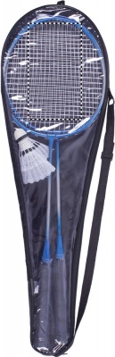 Badminton set including 2 shuttlecocks and 2 badminton rackets. Comes with its own plastic carry bag with shoulder strap.