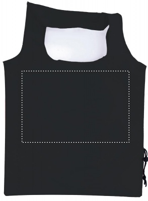Foldable shopping bag in 210D polyester with drawstring closure on pouch.