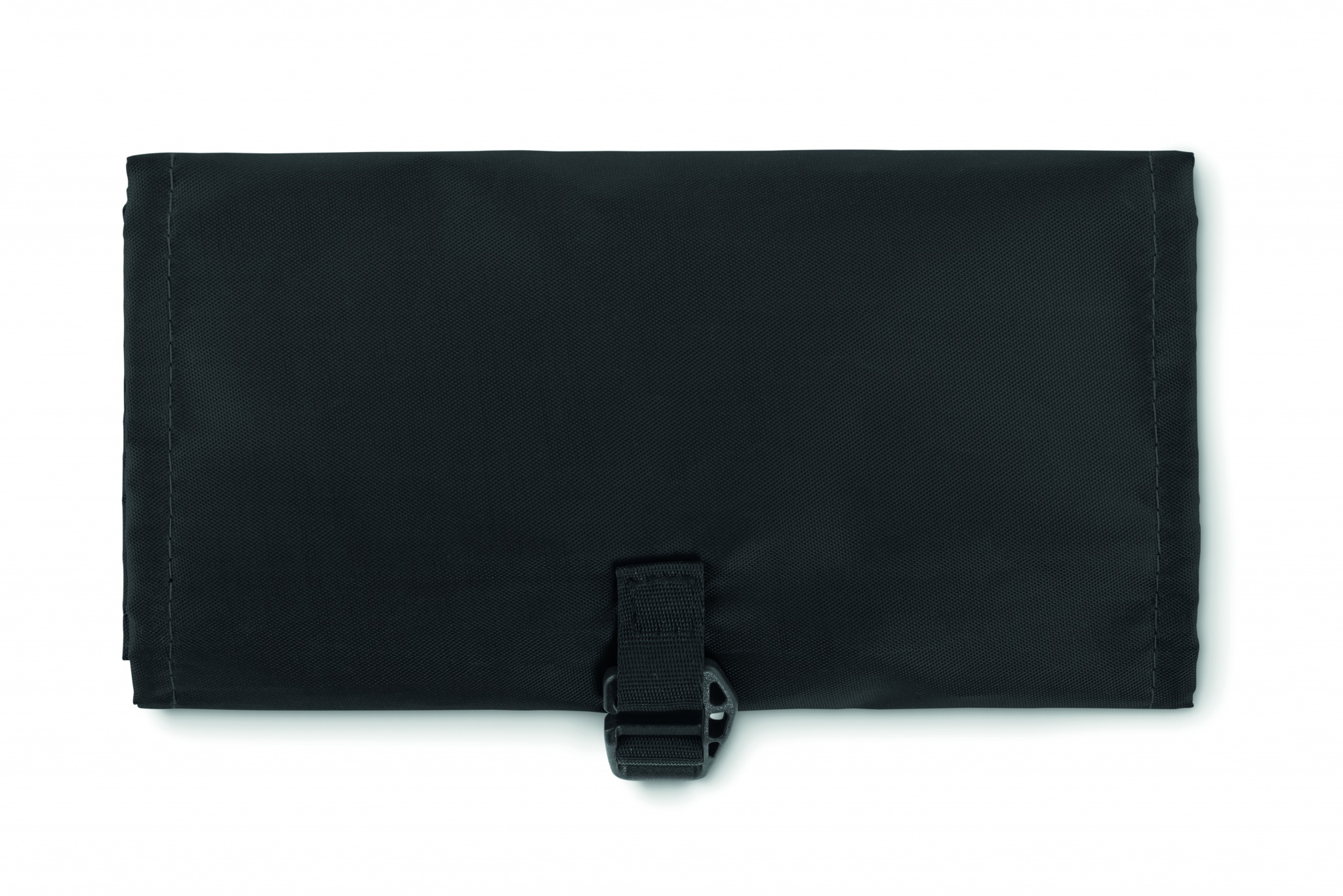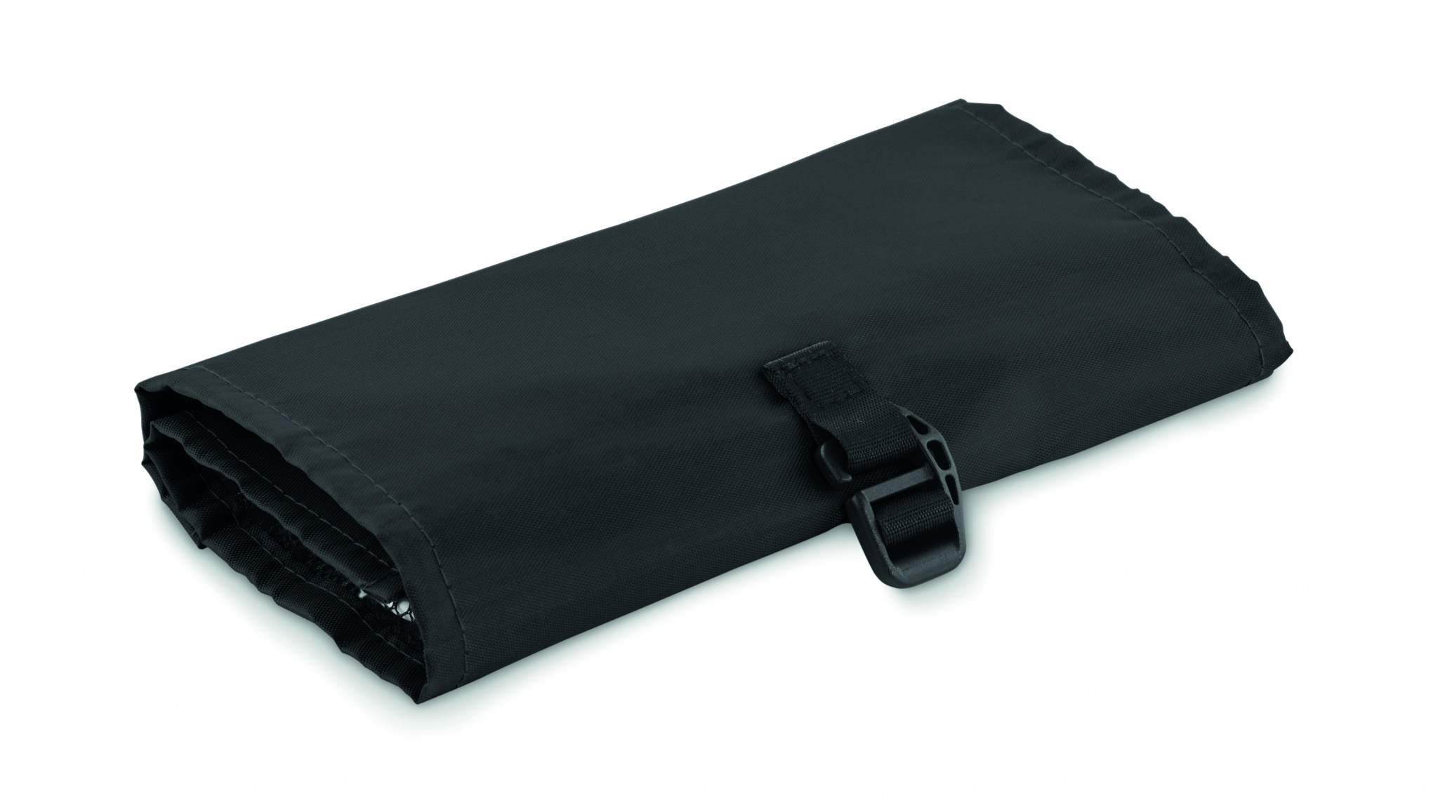 210D RPET cable roll bag organizer. It has a RPET mesh with 3 zippered compartments. This bag can also be used as a cosmetic bag.
