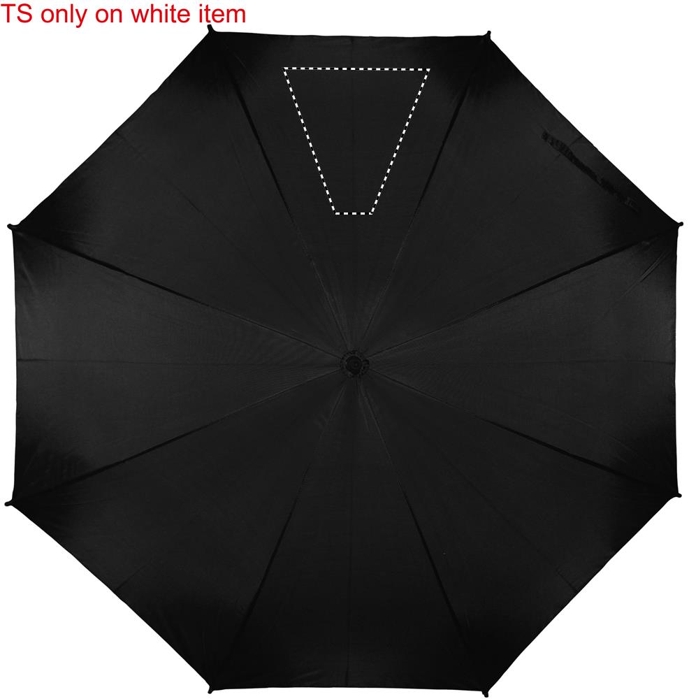 23 Inch auto open umbrella in 190T pongee with black plated metal shaft and ribs. Black plastic tips. Straight black EVA handle. Manual closure.