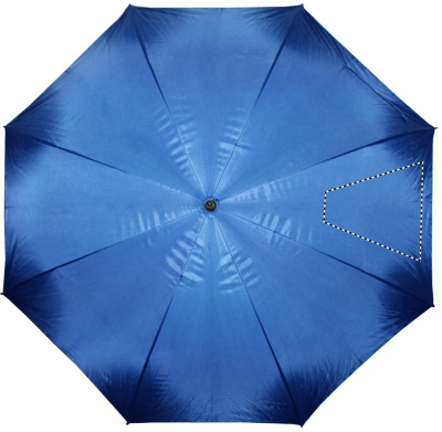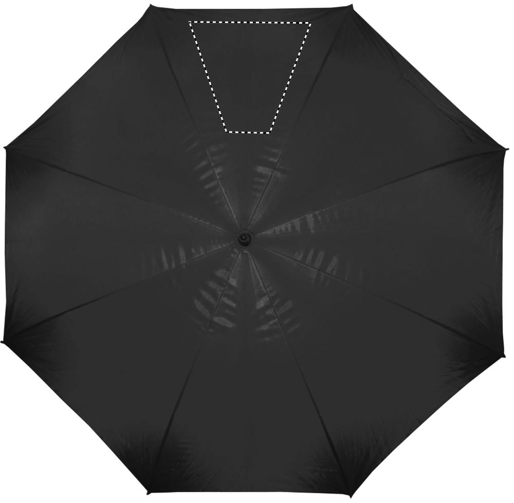27 inch auto open umbrella in 190T polyester material and inside silver coating. With black plated metal shaft and ribs. Black plastic tips. Straight black EVA handle. Manual closure.