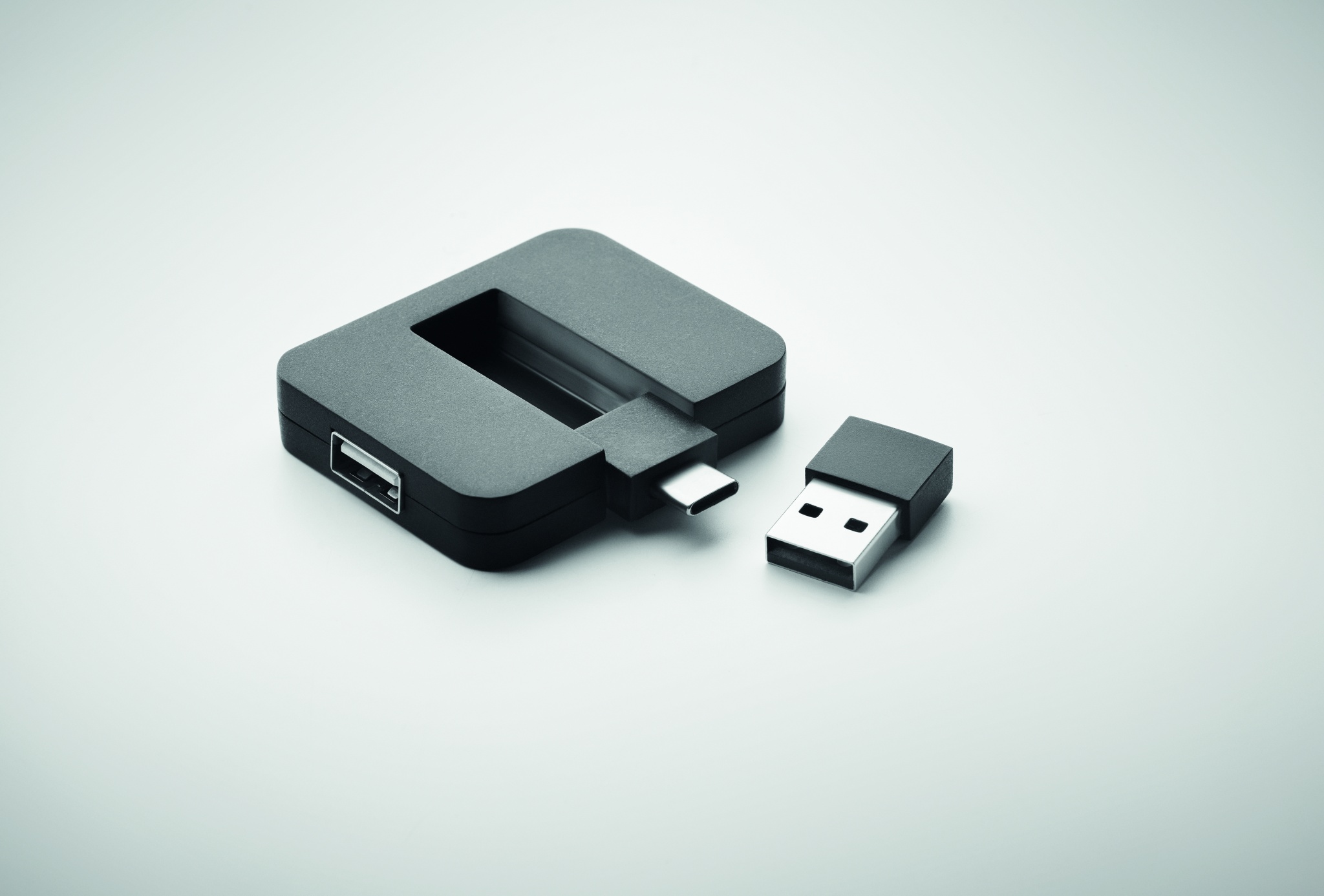 4 port 2.0 USB in ABS. Output: 2 x Type-A and 2 x Type-C. Input: Type-C & Type-A.