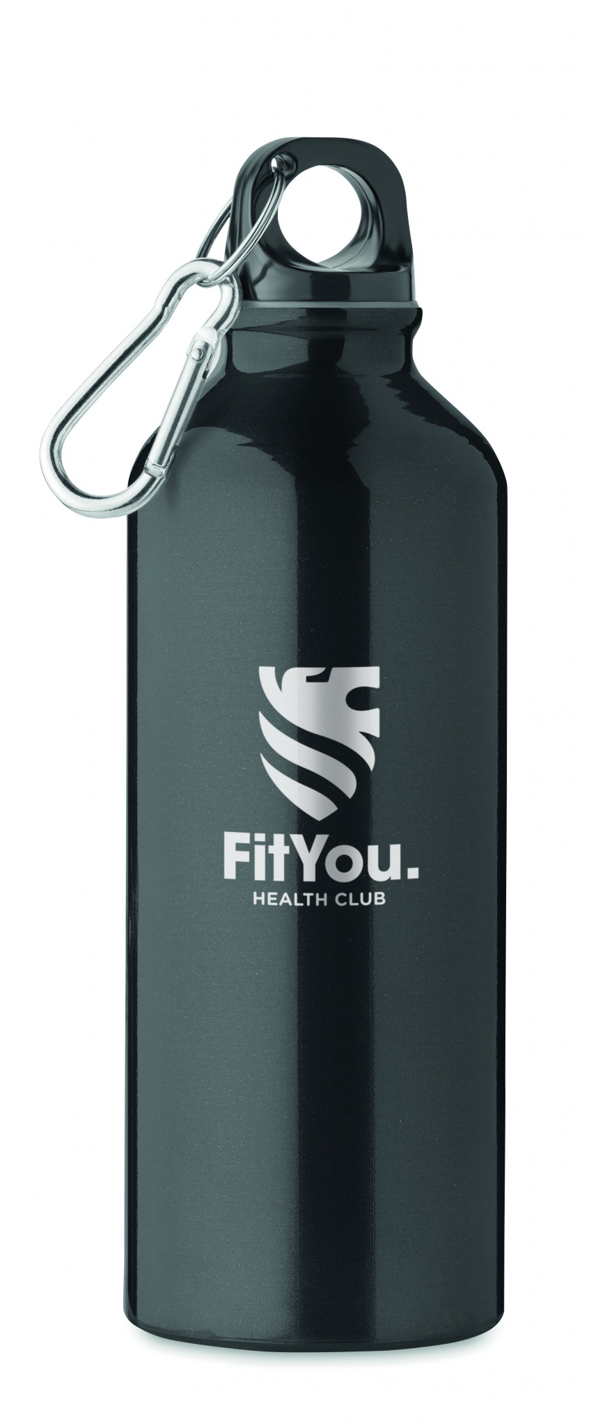 Single wall recycled aluminium bottle with carabiner. Capacity: 500 ml. Leak free. The carabiner is not for climbing (non professional use). Sublimation print available on white item only.