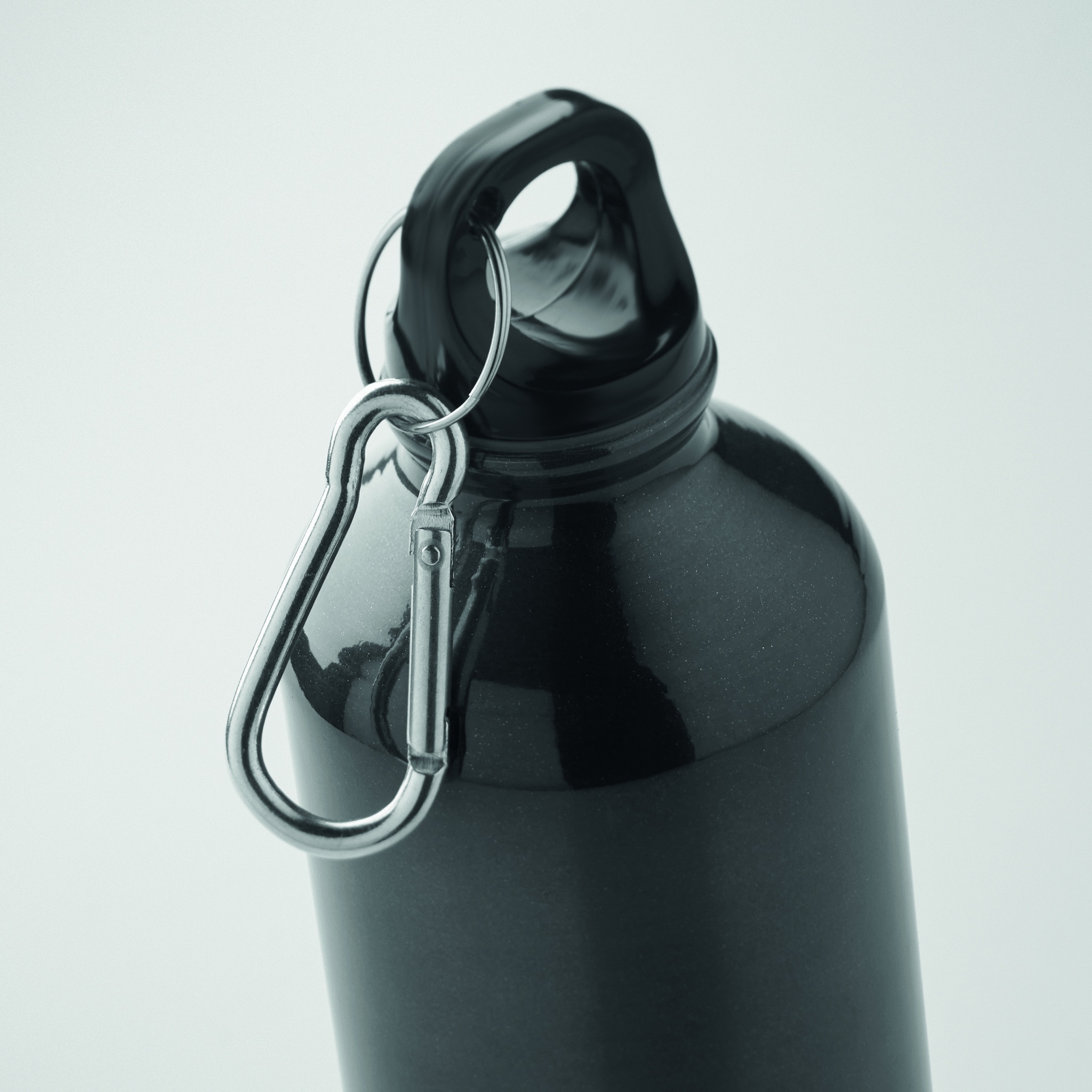 500 ml single-walled water bottle made of recycled aluminum with a carabiner, Black