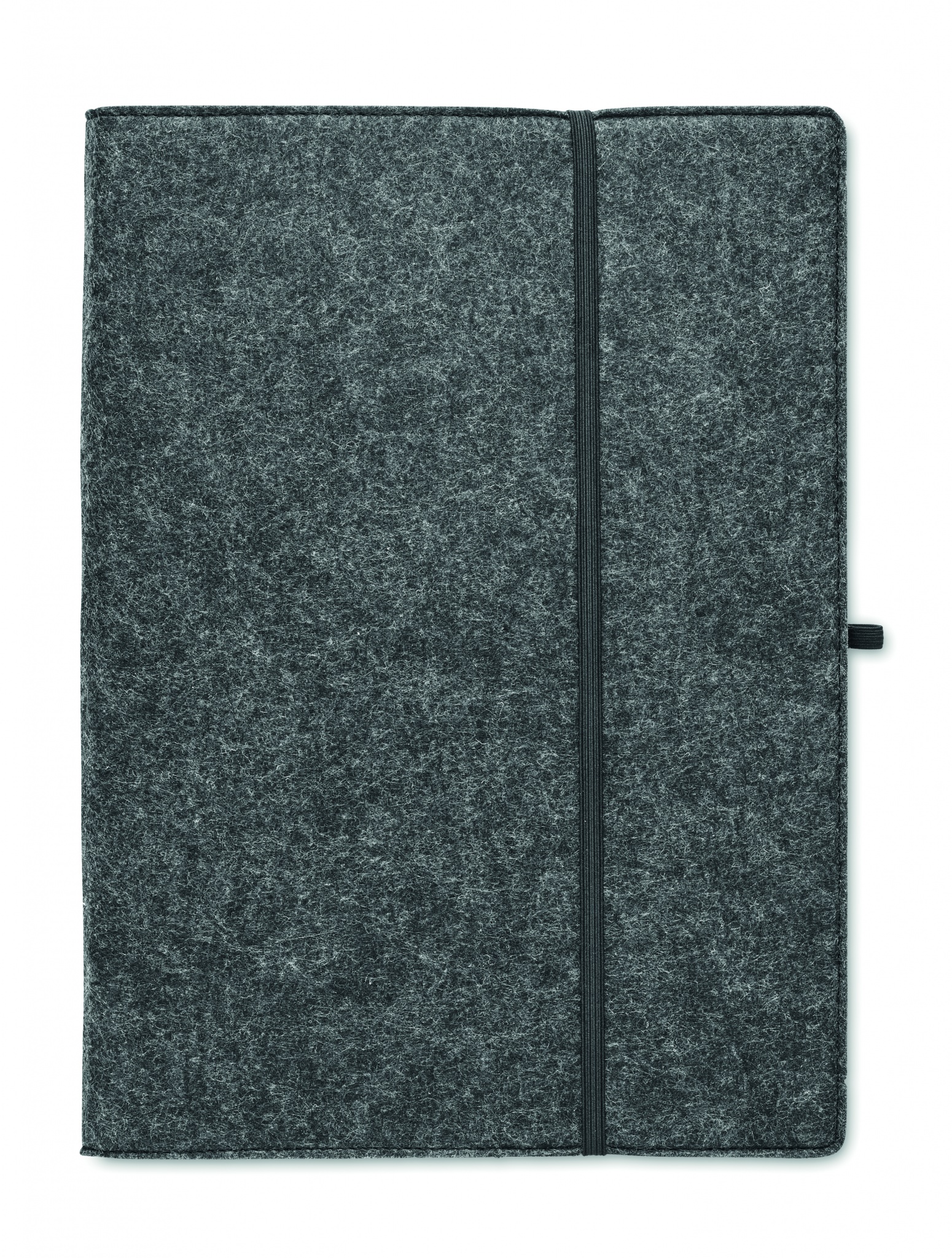A4 conference folder in RPET felt. 100 lined sheets notepad with elastic pen holder.