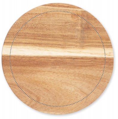 Small acacia wood cheese board with knife in stainless steel. Presented in corrugated carton giftbox. Wood is a natural product, there may be slight variations in colour and size per item, which can affect the final decoration outcome.