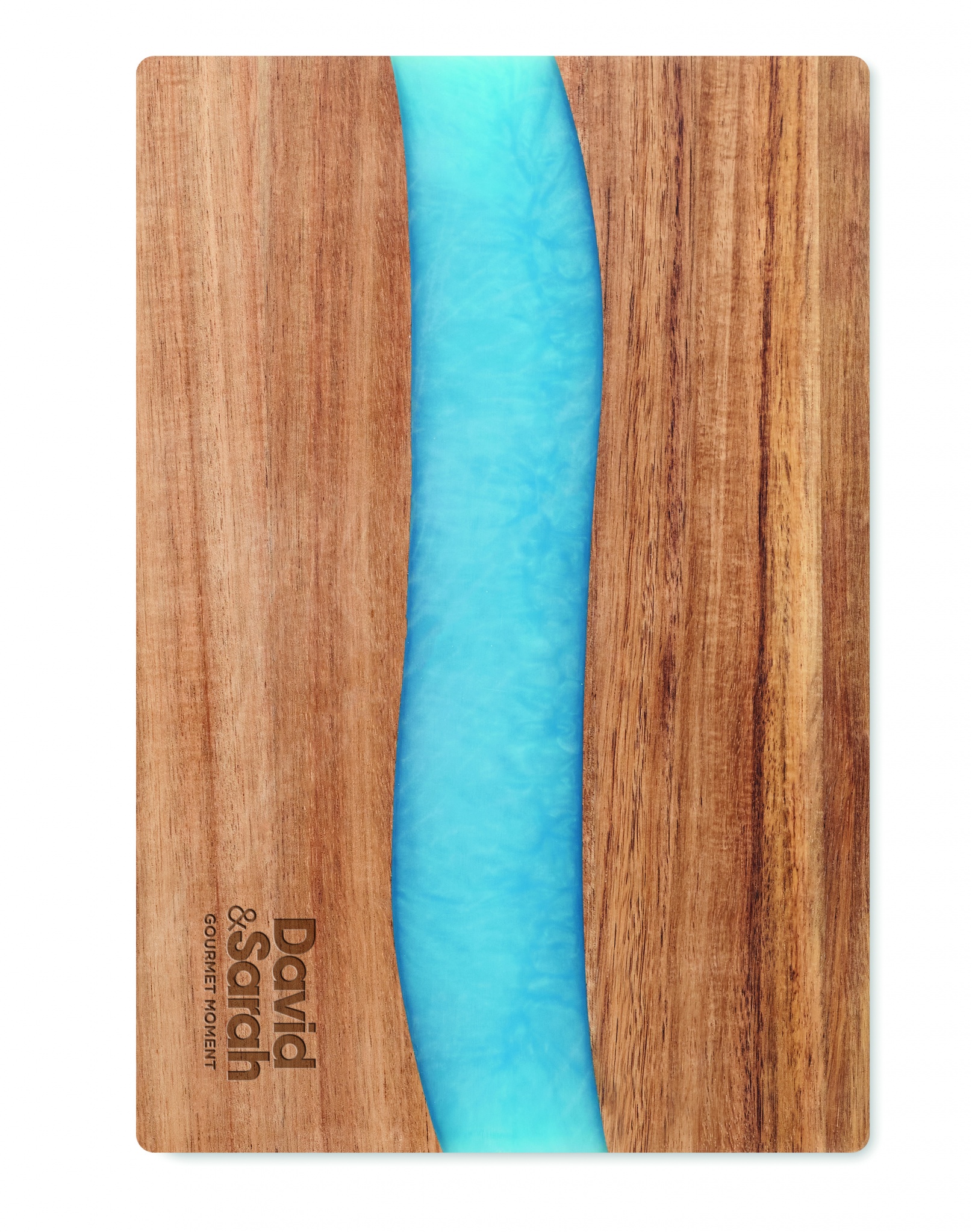 Acacia wood cutting board with epoxy resin detail. Wood is a natural product, there may be slight variations in colour and size per item, which can affect the final decoration outcome.