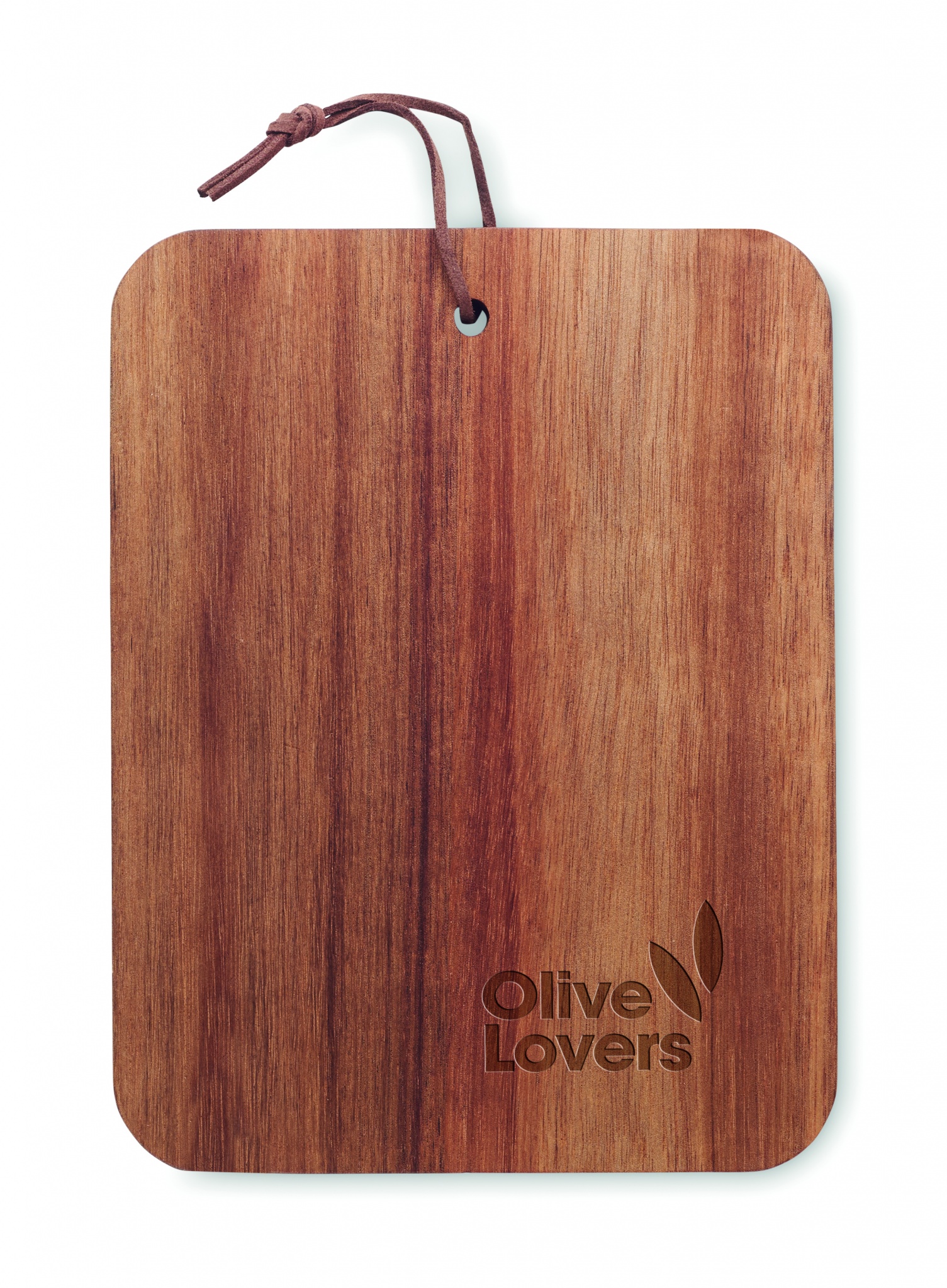 Acacia wood cutting board with PU cord. Wood is a natural product, there may be slight variations in colour and size per item, which can affect the final decoration outcome.