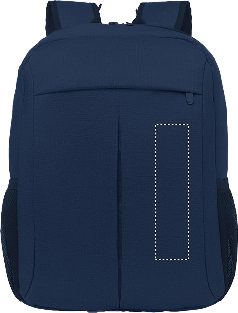 15 Inch computer backpack in 360D 2 tone polyester. Includes one internal 15 inch laptop compartment and one main front part with zipper pocket. Padded back and shoulder straps. Additional pocket for Tablet compartment. Trolley holder back side.