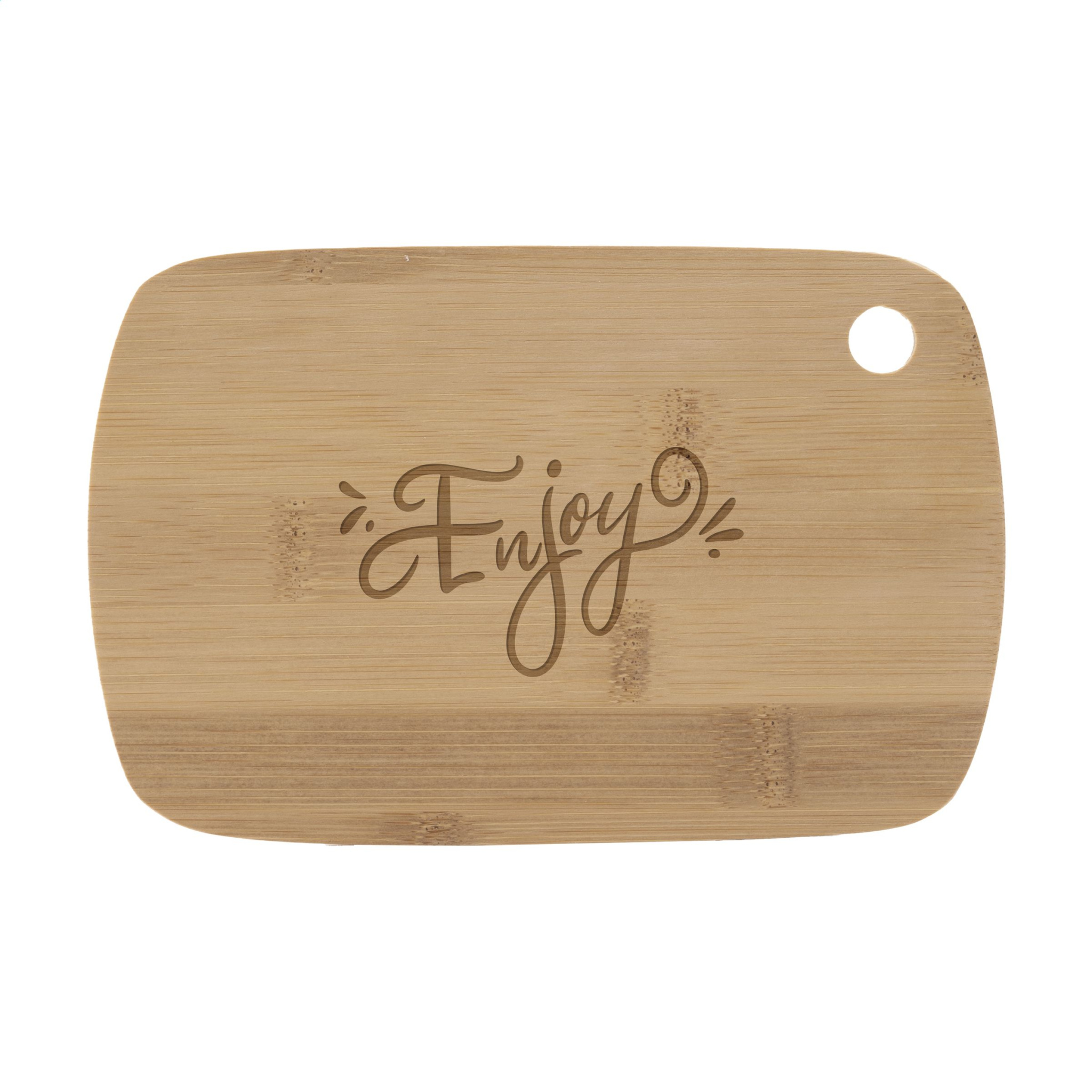 Bamboo cheese board in a small, handy size. With opening for hanging. Includes cheese knife. Bamboo is a natural material. As a result, the colour may vary per product. Items supplied as a set with, each set individually boxed.