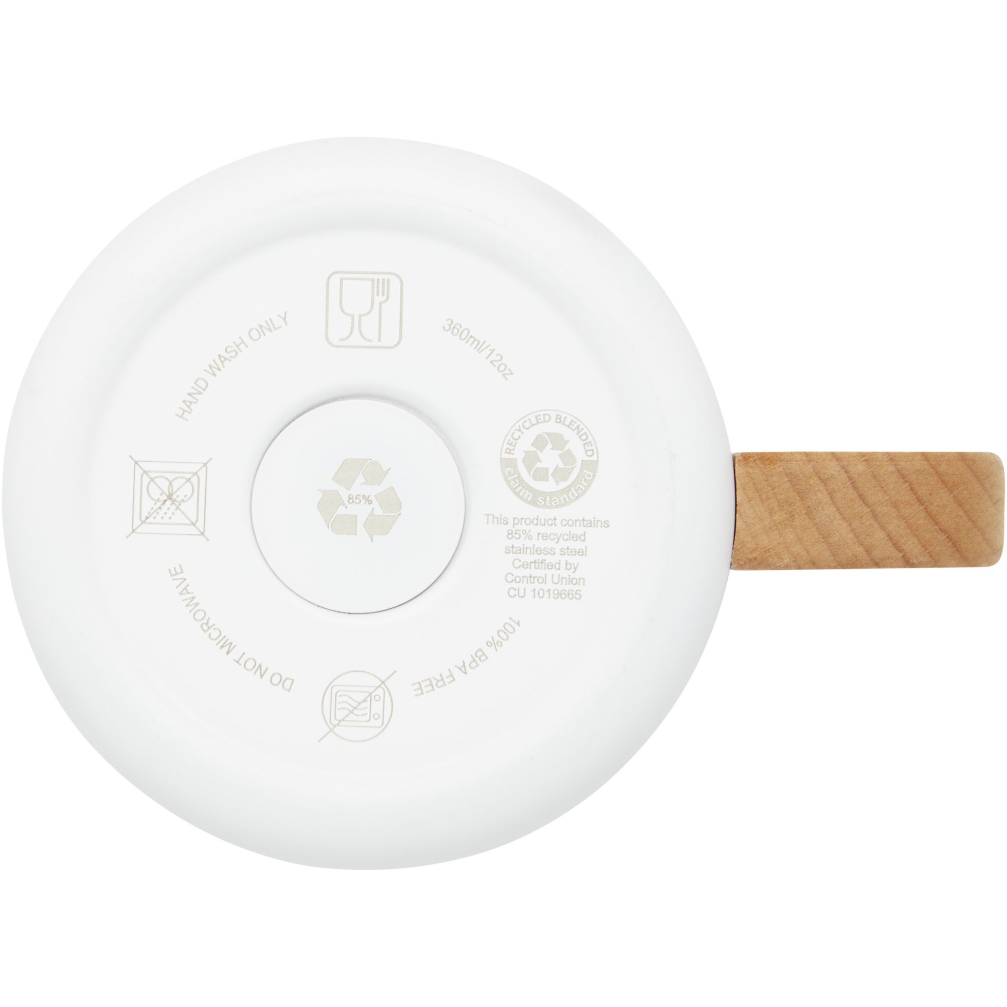 The Bjorn mug is made with RCS certified recycled stainless steel and the handle is made of responsibly sourced beech wood. The copper vacuum insulation in the mug helps to keep drinks at their ideal temperature for a long period of time. This mug is a great alternative to traditional mugs, designed to help to prevent heat transfer to the outside of the mug. Tested and approved under German Food Safe Legislation (LFGB) and for Phthalates Content under REACH. Capacity: 360 ml. BPA free.