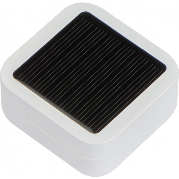 In-ear Bluetooth headphones with charging indicator and charging station. This can be charged either via the solar field in the lid or via the charging cable (included). Battery: 35mAh, runtime: 2-3 hours, charging time with cable: approx. 1 hour, charging time with solar field: approx. 4 hours. Your logo will be placed on the bottom of the box.