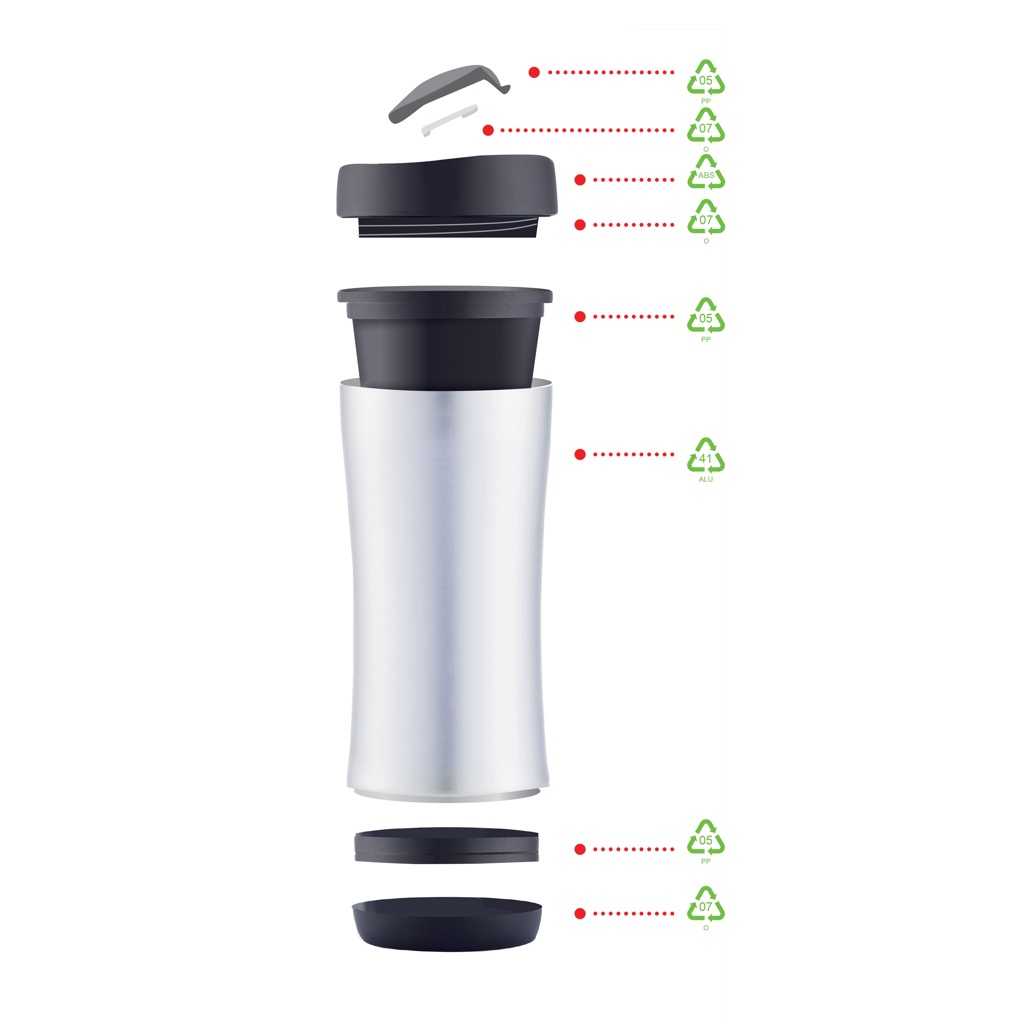 The Boom is a 225ml leakproof, double walled travel mug for your hot or cold beverages on the go. The most surprising feature is that it’s designed to be completely dismantled at the end of its life-cycle for recycling. Show your commitment by disassembling and recycling each part for a cleaner world. Registered design®