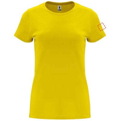 Fitted short-sleeve t-shirt for women. 1x1 ribbed crew neck. Reinforced covered seams in collar. Removable label.
