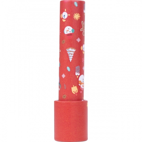 Kaleidoscope with a Christmas design. Each turn creates new, fascinating shapes and colors. Your logo is applied to the front of the kaleidoscope using a label.