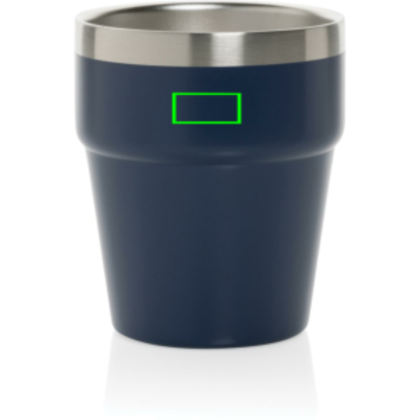 Double wall steel cup, perfect for the coffee machine. Made from 100% RCS certified steel. RCS certification ensures a completely certified supply chain of the recycled materials. Hand wash only. Total recycled content: 100% based on total item weight. BPA free. Capacity 300ml. Including FSC®-certified kraft gift packaging.