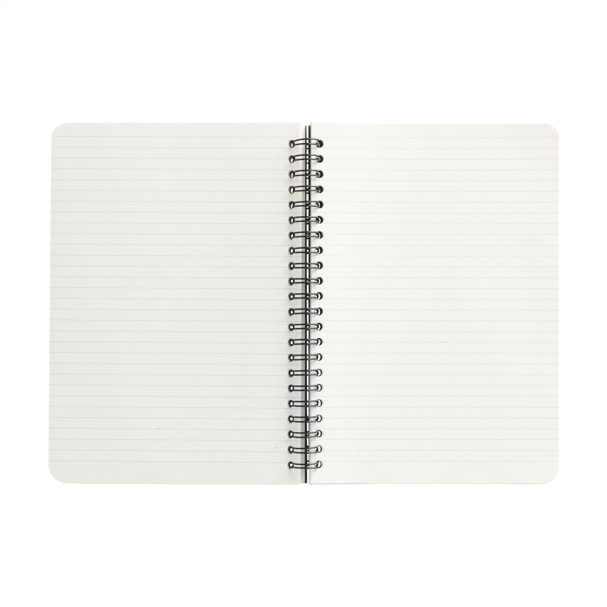 WoW! A5 notebook with a cover made from coffee grounds, it even smells like coffee! Coffee grounds remain after brewing and are then used to create this product. Coffee grounds are an organic material and are naturally biodegradable. This notebook is ideal for taking notes during important meetings and business lunches. The handy wire-o-binding allows the pages to be completely turned. This makes it easier to write without the book closing all the time. The 80 sheets/160 pages of lined paper (80 g/m²) in this notebook are 100% recycled.