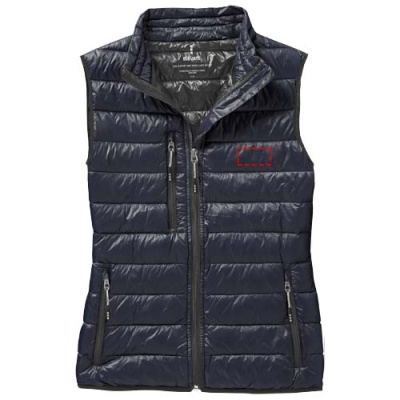 The Fairview women's lightweight down bodywarmer – perfect functionality to elevate your outdoor attire. This bodywarmer features elasticated binding on the bottom, offering a comfortable and slightly tight fit that adds protection against chilly winds. The outer shell fabric is made of nylon dull cire 20D woven with a water-repellent finish, ensuring exceptional durability and good protection against the elements. The lightweight material allows for easy movement and effortless wear throughout the day. The downproof pressed fabric prevents the down and feathers from escaping, ensuring long-lasting warmth and an extra level of durability. The down insulation is RDS certified (Responsible Down Standard), consisting of down and feathers, providing lightweight warmth without compromising ethical standards. A reliable companion for any outdoor adventure. This bodywarmer is designed with a fitted shape for a feminine look.