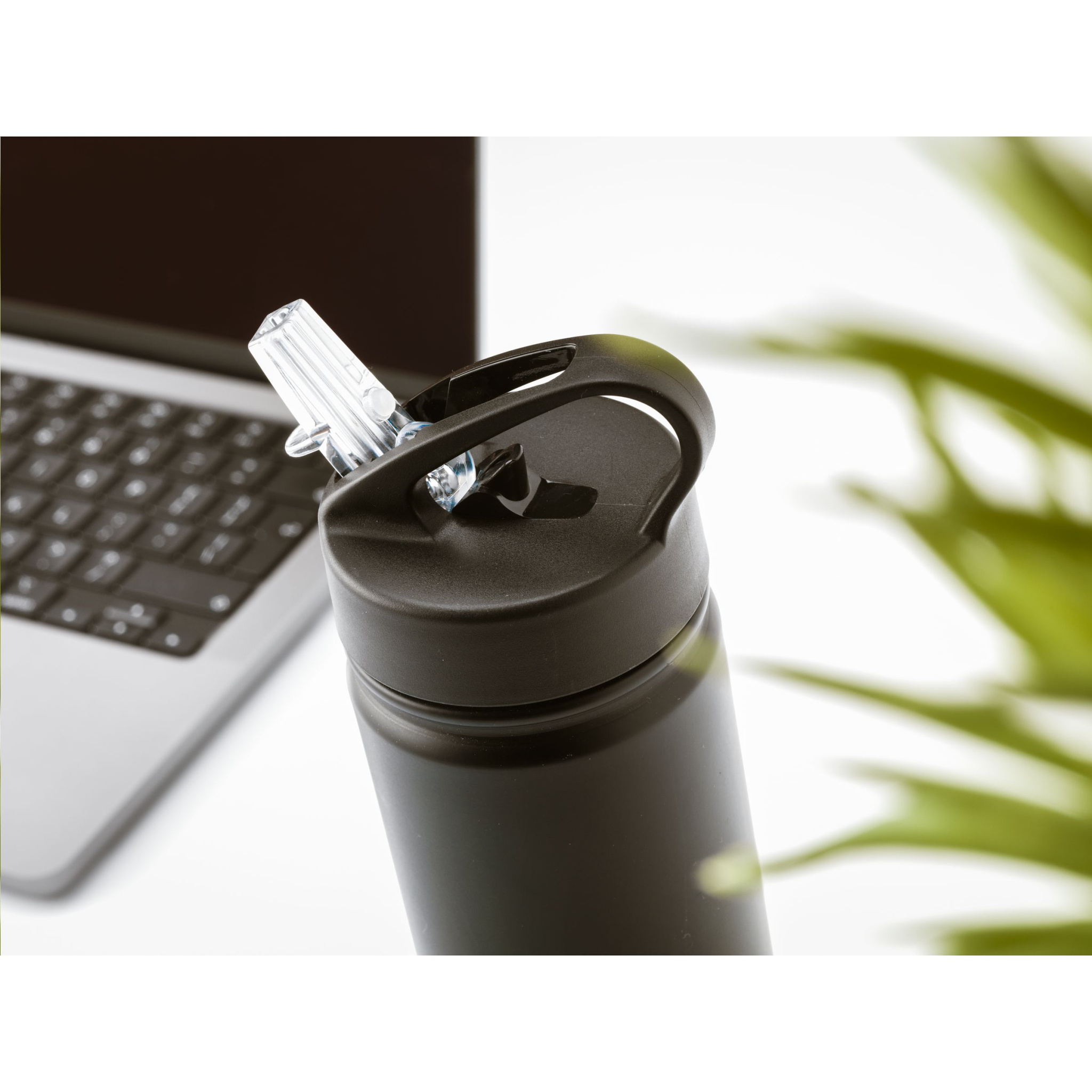 WoW! Double-walled, leak proof thermos flask made from recycled stainless steel with a handy screw cap. This bottle is equipped with a collapsible mouthpiece and a closable straw. Beautifully finished with a semi-matte coating. Suitable for maintaining hot and cold drinks at the correct temperatures. RCS-certified. Total recycled material: 88%. Capacity 500 ml. Stainless steel can be recycled many times whilst retaining the quality of the material. By using recycled stainless steel, fewer new raw materials are needed. This means less energy consumption and less use of water. A responsible choice. Each item is supplied in an individual brown cardboard box.