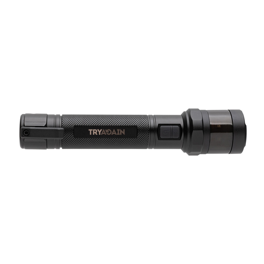 Heavy-duty car safety tool made with RCS certified recycled Aluminum and ABS. Total recycled content: 59% based total item weight. RCS certification ensures a completely certified supply chain of the recycled materials. The torch uses a re-chargeable A-grade 2000 mah lithium battery so no need to replace the batteries. Simply re-charge via your USB socket. With powerful 500 lumen torch with beam up to 100 metres. The led light has 4 modes (100%,50%, 30% and flashing) With red emergency LED that can operate in 3 modes ( quick flash, slow flash and SOS). With integrated belt cutter and window hammer. With magnet to attach it to a magnetic surface. Operating time on one charge: 2 hours. IPX 4 waterproof.