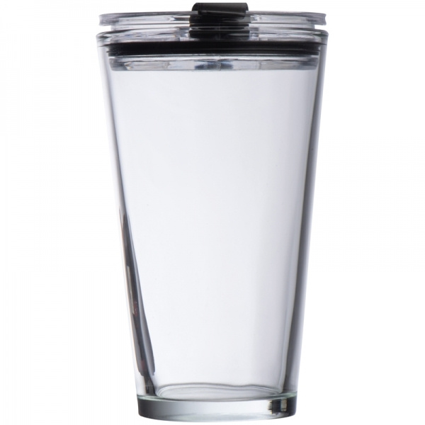 Glass mug with leakproof lid and 400ml capacity. Your logo will be engraved on the cup.