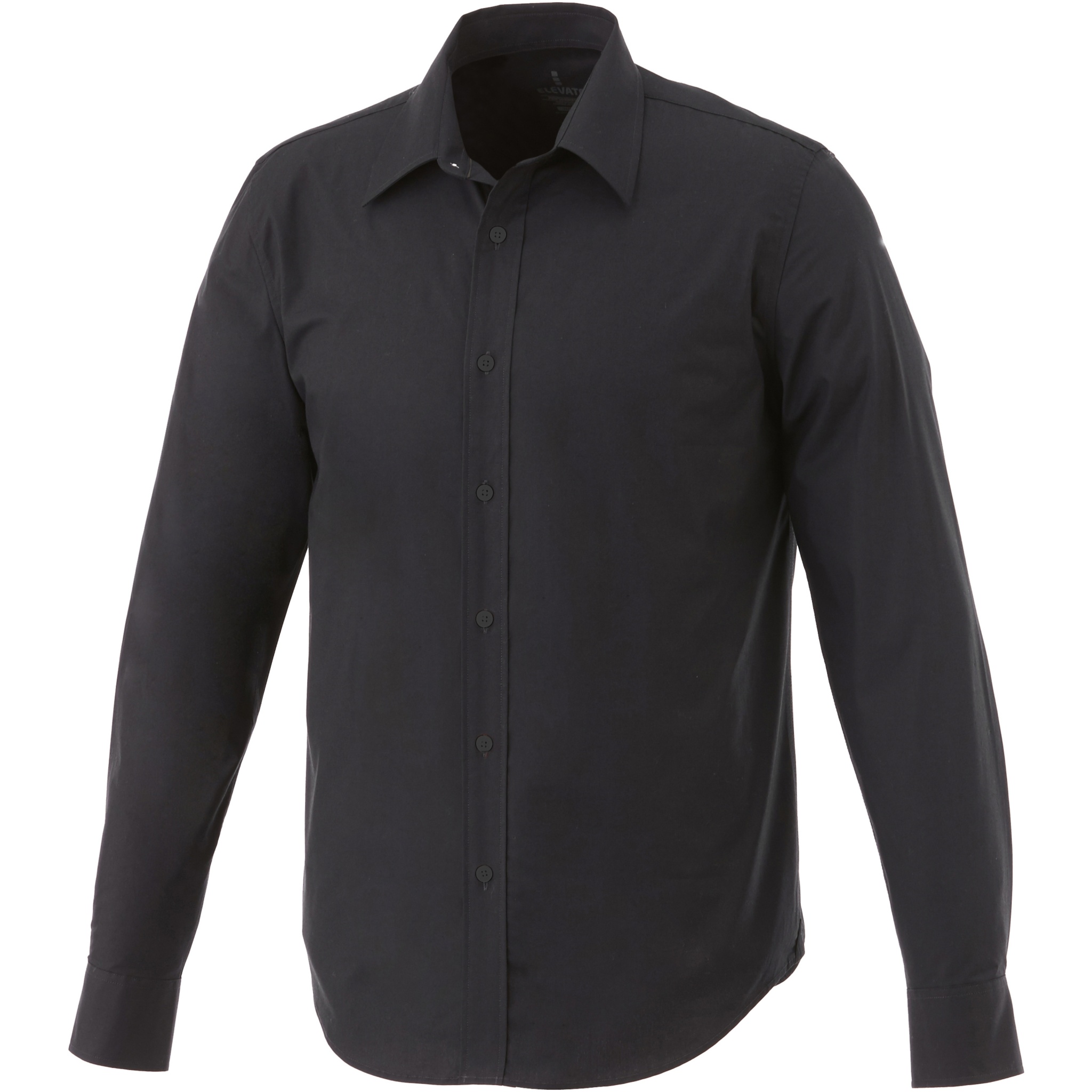 The Hamell long sleeve men's stretch shirt – an ideal combination of style and comfort. This woven shirt features a lightweight poplin fabric of 97% cotton and 3% elastane. Poplin fabric is known for its tight weave, which provides exceptional durability while maintaining a soft and smooth texture against the skin. This means that the Hamell shirt is not only comfortable to wear but also resistant to everyday wear and tear, ensuring long-lasting use. The added stretch provides ultimate freedom of movement, ensuring optimal comfort throughout the day even more. Its hidden button-down collar adds sophistication while maintaining a clean look.