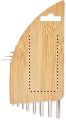 Hex key set in bamboo holder. Including Hexagon wrench in carbon steel with nickel plating with following sizes: 1.5mm - 2mm - 2.5mm - 3mm - 4mm - 5mm - 5.5mm - 6mm. Bamboo is a natural product, there may be slight variations in colour and size per item, which can affect the final decoration outcome.