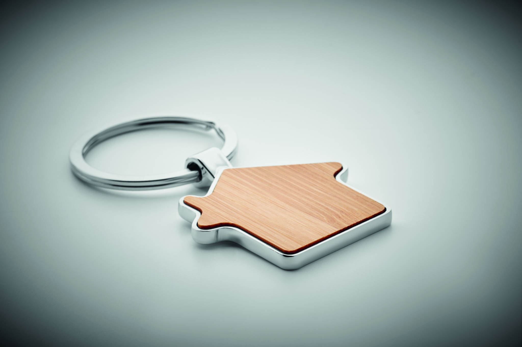 Logo trade promotional merchandise image of: House key ring metal bamboo NORDIC