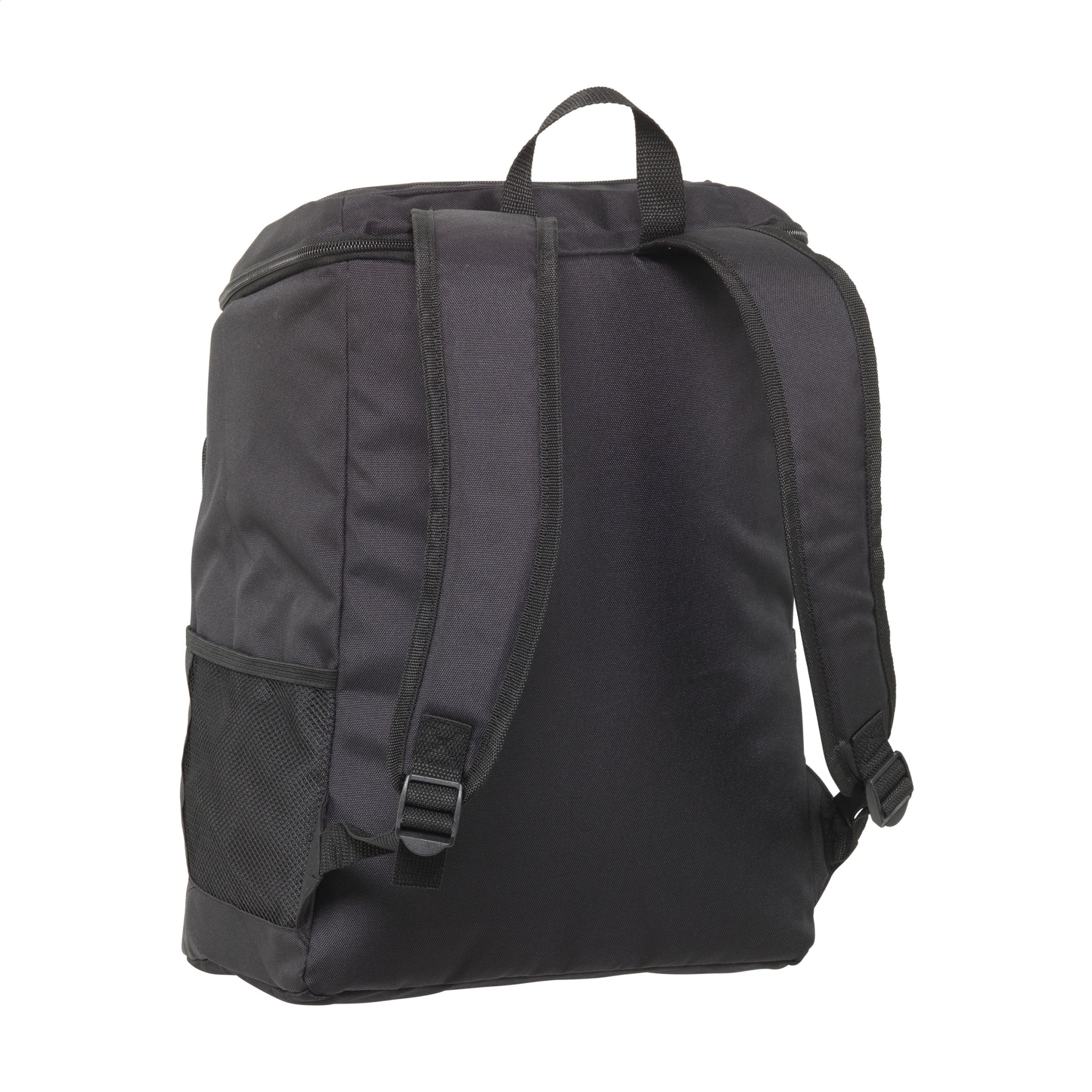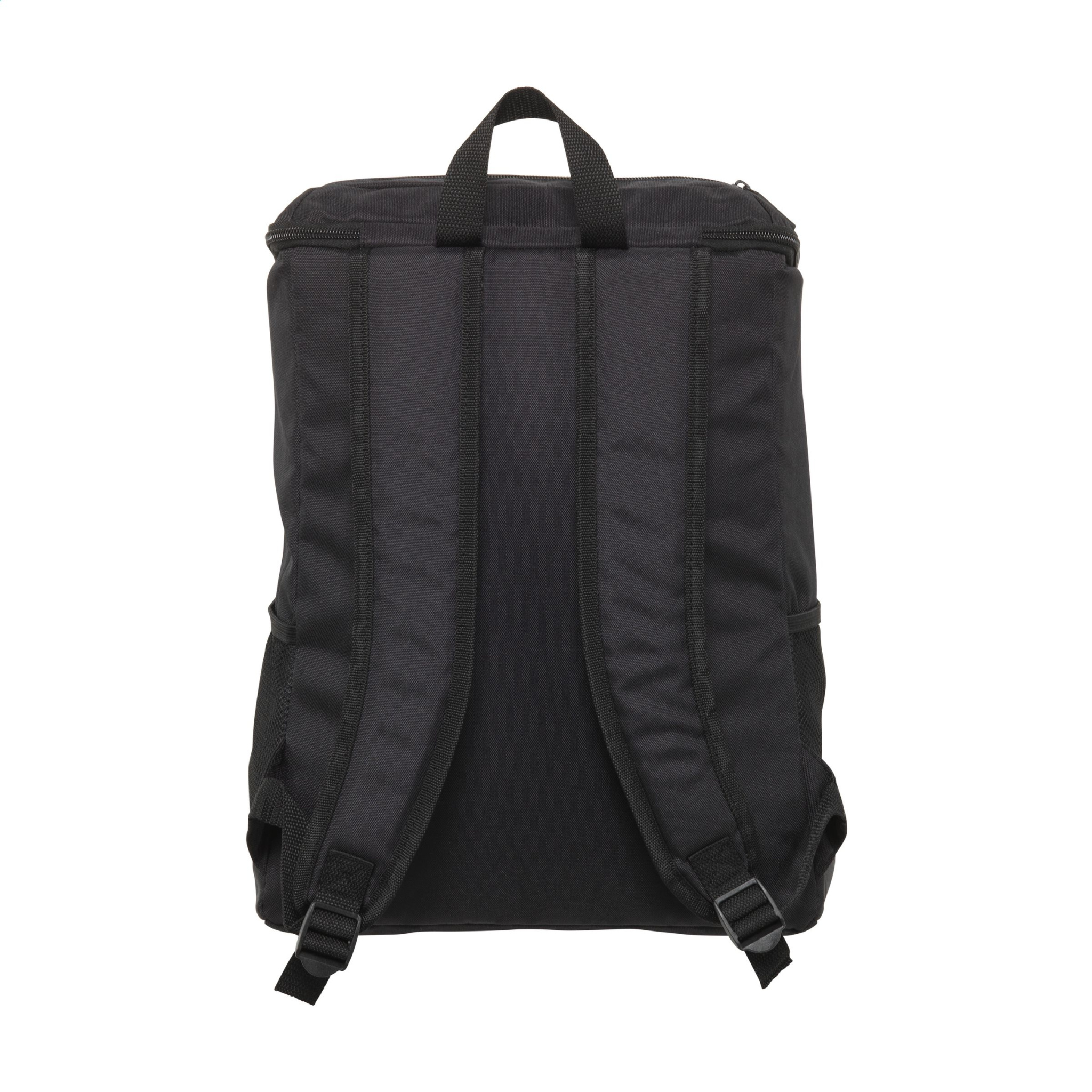 WoW! Backpack/cool bag made from 600D RPET polyester. The spacious cooling compartment has a leak proof, 4 mm thick PEVA lining. This bag also has a zip pocket on the front and a mesh pocket on the side, handy for taking a drinking bottle with you. Supplied with a foam back, padded adjustable shoulder straps and a carrying loop. GRS-certified. Total recycled material: 50%. Capacity approx. 23 litres.