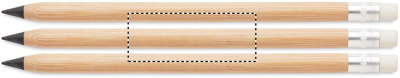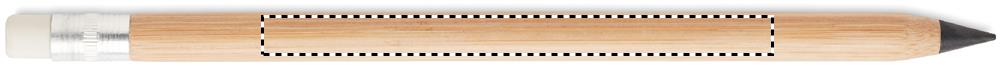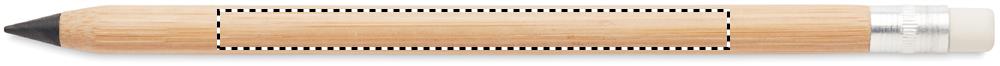 Long lasting bamboo inkless pen with bamboo barrel and eraser on top with a paper cap. The pen writes with the graphite tip. This makes this pen a great sustainable alternative to the traditional pen. Bamboo is a natural product, there may be slight variations in colour and size per item, which can affect the final decoration outcome.